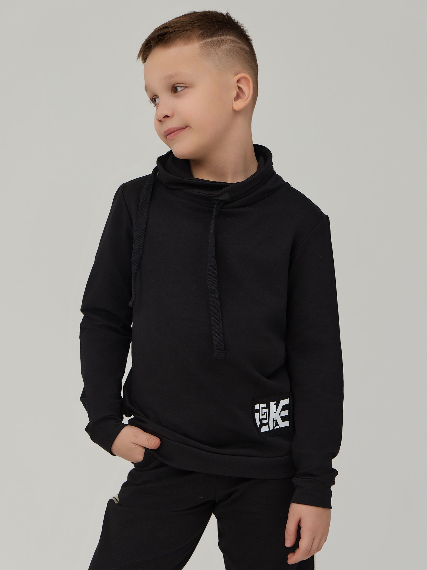 Толстовка из футера черного цвета . Ассиметричный воротник со шнуром. Изделие выполнено из трикотажа премиального качества - ПЕНЬЕ, с содержанием хлопка более 92%
