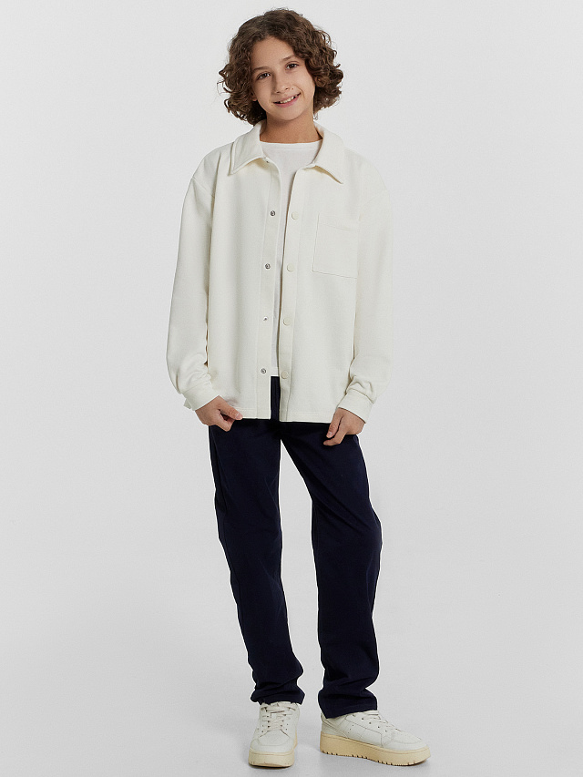 Толстовка для мальчиков от Mark Formelle — идеальное сочетание комфорта, практичности и стильного дизайна. Свободный силуэт обеспечивает удобную посадку, а длина до линии бедер делает модель универсальной и подходящей для разных типов фигуры. Спущенная линия плеча создает расслабленный образ, а рукава с манжетами добавляют аккуратности и удобства, предотвращая их растягивание и сохраняя форму. Отложной воротник придает изделию классический акцент, добавляя элегантности и завершенности дизайну. Застежка на кнопки делает толстовку удобной и практичной, позволяя легко регулировать посадку. Нижний срез обработан швом вподгибку, что обеспечивает аккуратность и долговечность изделия. Толстовка выполнена из футера без подчеса — мягкого и прочного материала, который отлично сохраняет тепло и обеспечивает комфорт в течение всего дня. Стильная и удобная модель для активных будней, прогулок и повседневных образов!