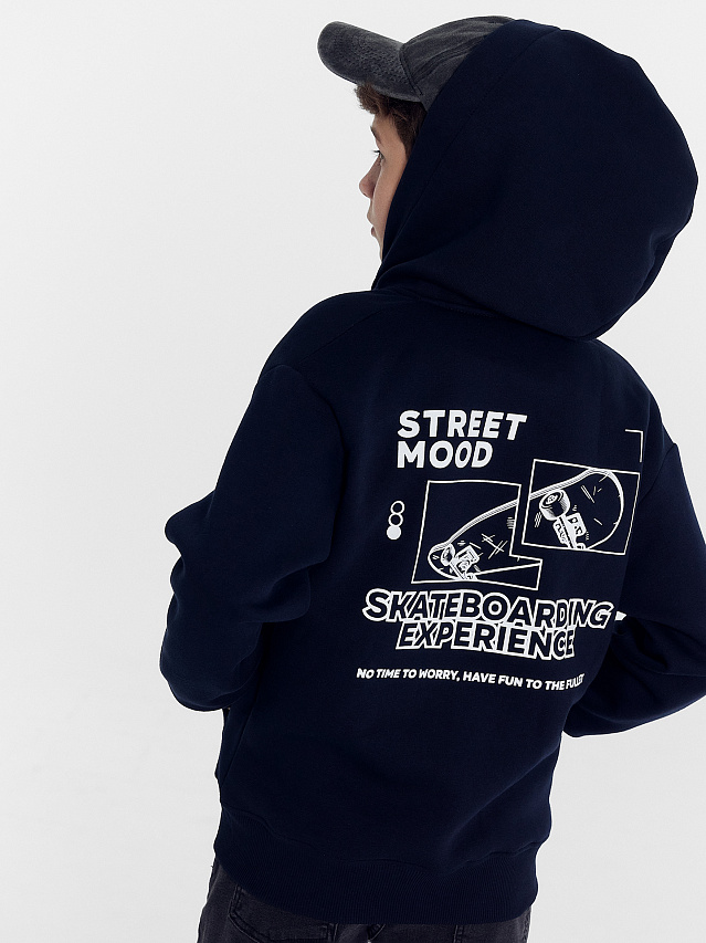 Толстовка для мальчиков синяя с печатью