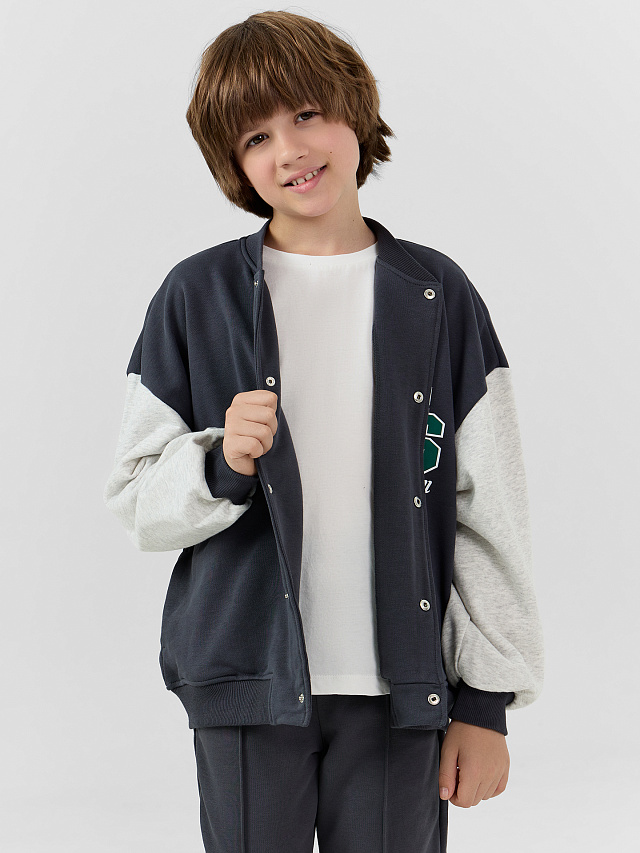 Толстовка детская свободного кроя из высококачественного хлопка. Круглый вырез горловины. Есть небольшой воротник-стойка из рибаны. Плечо спущено, пройма углублена. Рукава длинные. По низу рукавов выполнены манжеты из рибаны. По бокам выполнены функциональные карманы для важных мелочей. По низу изделия - пояс из рибаны. Стильная и комфортная толстовка на каждый день в школу на учебу, детский сад и на прогулки с друзьями. Дополнить можно подходящим низом из базовой коллекции одежды для мальчиков. Широкий размерный ряд. Лучший выбор для создания образа в стиле casual. Рекомендуем!