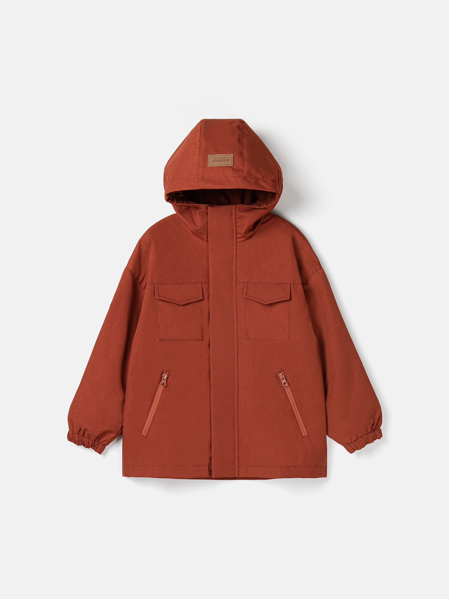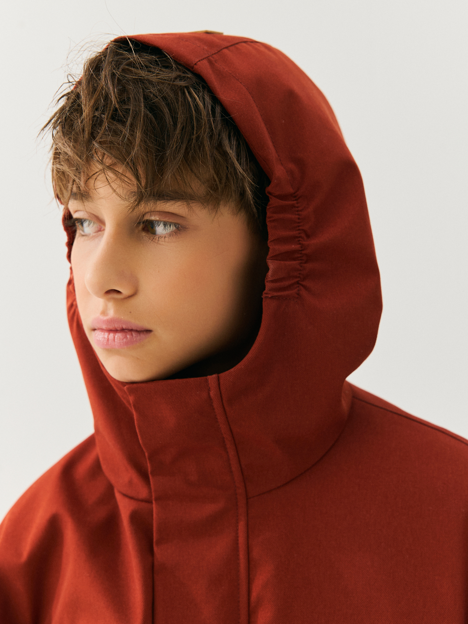 Несъемный капюшон с утяжкой на резинку для идеальной посадки.