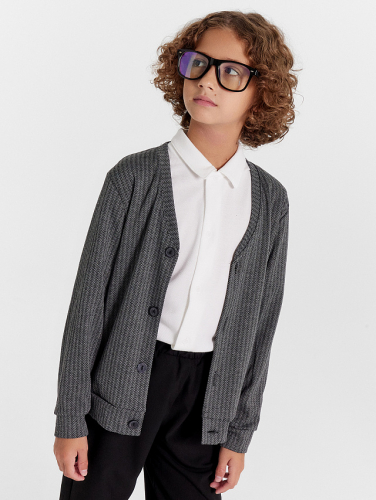 Жакет прямого силуэта. Спинка цельнокроенная, перед с центральной застежкой на пуговицы. Горловина V-образной формы. Боковые швы перенесены на переднюю деталь, карманы в швах. Рукав втачной, одношовный, длинный. Пояс и манжеты из основного полотна.