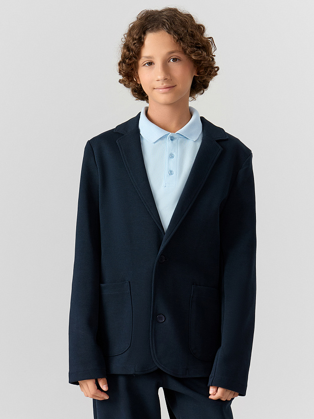 Элегантный однобортный жакет станет прекрасным дополнением к гардеробу каждого школьника. Выполненный из высококачественного хлопка, он отличается лаконичным дизайном и прямым силуэтом, подчеркивающим аккуратность и опрятность образа. Легкий и комфортный в носке. Два накладных кармана не только добавляют практичности, но и являются стильным акцентом. Длинные рукава обеспечивают свободу движений. Застежка на две пуговицы подчеркивает классический стиль изделия. Этот жакет — незаменимая базовая вещь в гардеробе мальчика, которую легко комбинировать с брюками или джинсами для создания повседневных аутфитов. Широкий размерный ряд. Рекомендуем!