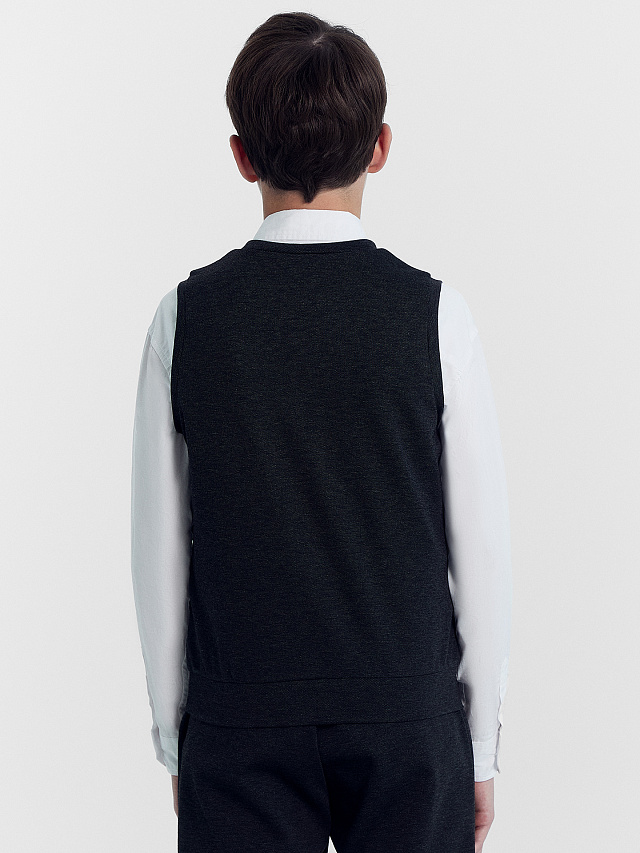 Школьный жилет для мальчиков прямого силуэта — идеальный элемент гардероба, который сочетает в себе элегантность и практичность. Безрукавка обеспечивает свободу движений, позволяя мальчику активно заниматься учебой и участвовать во всех школьных мероприятиях. Горловина V-образной формы придает этому жилету особый шарм и делает его универсальным. Подчеркивает линию шеи, придавая образу мальчика изысканность и элегантность. Позволяет комфортно и гармонично сочетать жилет с другими элементами одежды. Выполнен из прочного и высококачественного материала, который приятен на ощупь и легок в уходе. Гарантирует долговременное использование и сохранение идеального вида даже после многократных стирок. Благодаря своей универсальности, он идеально подходит для различных ситуаций, будь то повседневные школьные занятия или особые мероприятия, такие как школьный праздник или концерт. Комбинируйте этот жилет с рубашкой и брюками, чтобы создать официальный и элегантный образ. Жилет станет прекрасным дополнением детского гардероба. Рекомендуем эту стильную школьную новинку детской одежды!