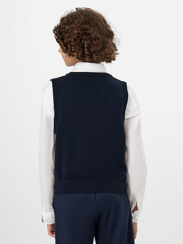 Этот жилет легко комбинируется с брюками и рубашкой, создавая собранный и стильный образ. Он станет надежным помощником в гардеробе юного школьника, сочетая в себе комфорт, долговечность и безупречный внешний вид. Рекомендуем для тех, кто ценит качество и классический стиль.