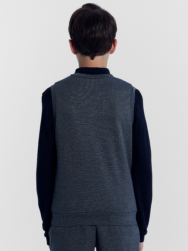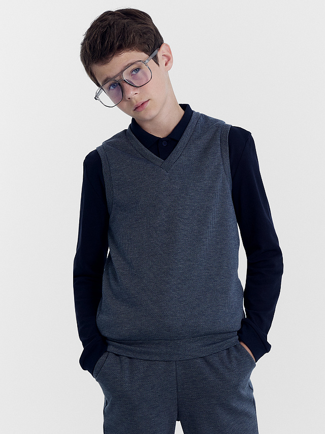 Школьный жилет для мальчиков прямого силуэта — идеальный элемент гардероба, который сочетает в себе элегантность и практичность. Безрукавка обеспечивает свободу движений, позволяя мальчику активно заниматься учебой и участвовать во всех школьных мероприятиях. Горловина V-образной формы придает этому жилету особый шарм и делает его универсальным. Подчеркивает линию шеи, придавая образу мальчика изысканность и элегантность. Позволяет комфортно и гармонично сочетать жилет с другими элементами одежды. Выполнен из прочного и высококачественного материала, который приятен на ощупь и легок в уходе. Гарантирует долговременное использование и сохранение идеального вида даже после многократных стирок. Благодаря своей универсальности, он идеально подходит для различных ситуаций, будь то повседневные школьные занятия или особые мероприятия, такие как школьный праздник или концерт. Комбинируйте этот жилет с рубашкой и брюками, чтобы создать официальный и элегантный образ. Жилет станет прекрасным дополнением детского гардероба. Рекомендуем эту стильную школьную новинку детской одежды!