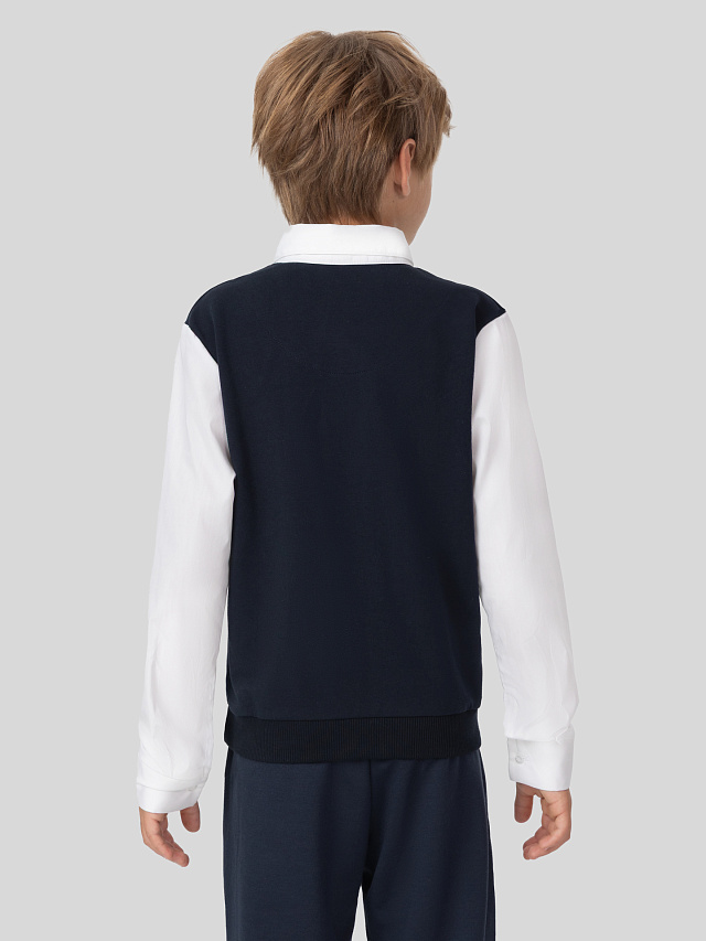 Этот жилет легко комбинируется с брюками и рубашкой, создавая собранный и стильный образ. Он станет надежным помощником в гардеробе юного школьника, сочетая в себе комфорт, долговечность и безупречный внешний вид. Рекомендуем для тех, кто ценит качество и классический стиль.