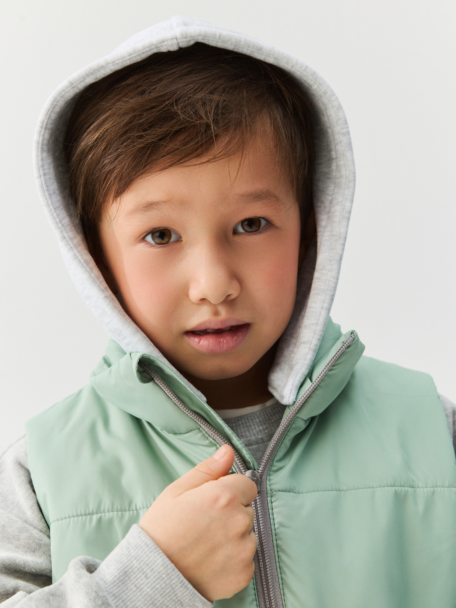 Жилет на молнии из курточной ткани с водоотталкивающей пропиткой.