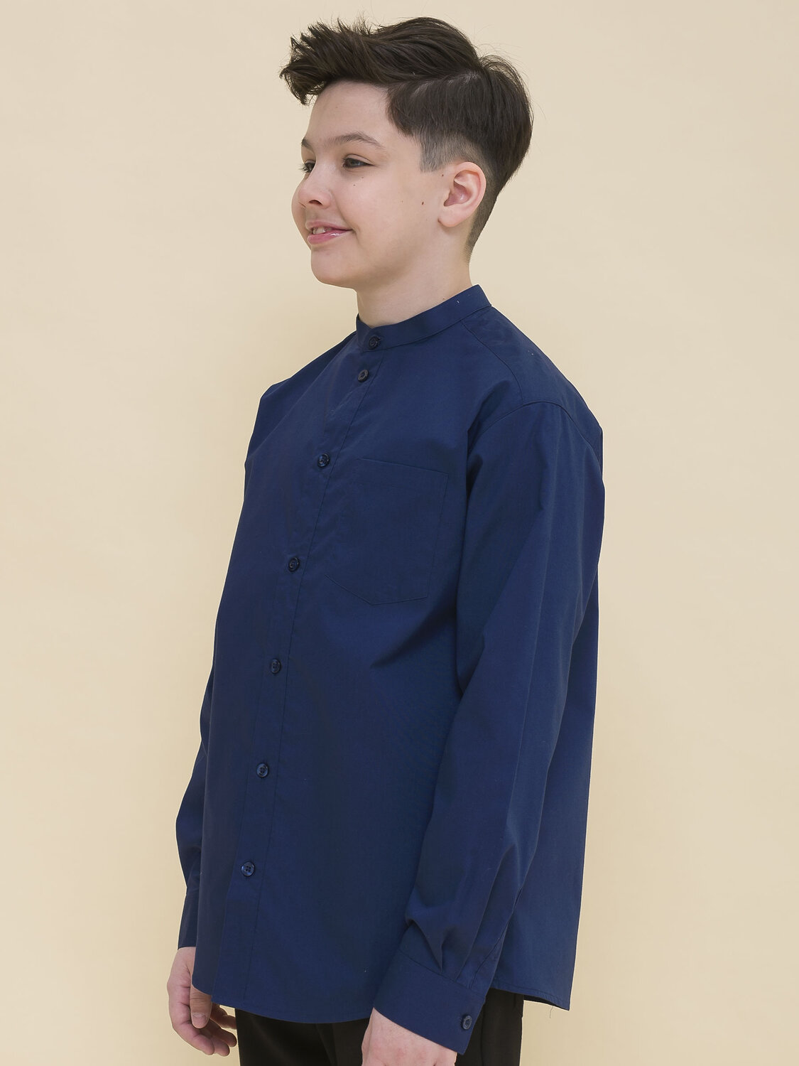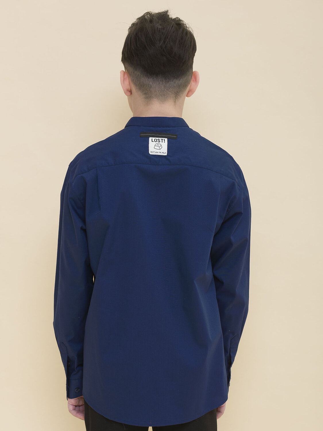 Школьная рубашка свободного силуэта с воротником-стойкой для мальчика. В составе ткани преобладает хлопок — изделие мягкое, дышащее и комфортное. Полиэстер помогает не терять форму и отличный внешний вид. По спинке кокетка с двумя защипами для свободы движения, по переду накладной карман — актуальные тренды сезона. Изюминка изделия — нашивка с забавным мотивирующим текстом на спинке: игра слов «потерять контроль: не ищи отдыха». Благодаря свободному силуэту подходит мальчикам с разными типами фигуры и носить не один сезон. Великолепно сочетается с различными брюками, пиджаками, жилетами. Модный и практичный вариант рубашки для школы.