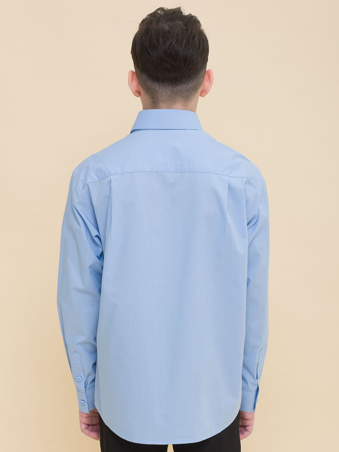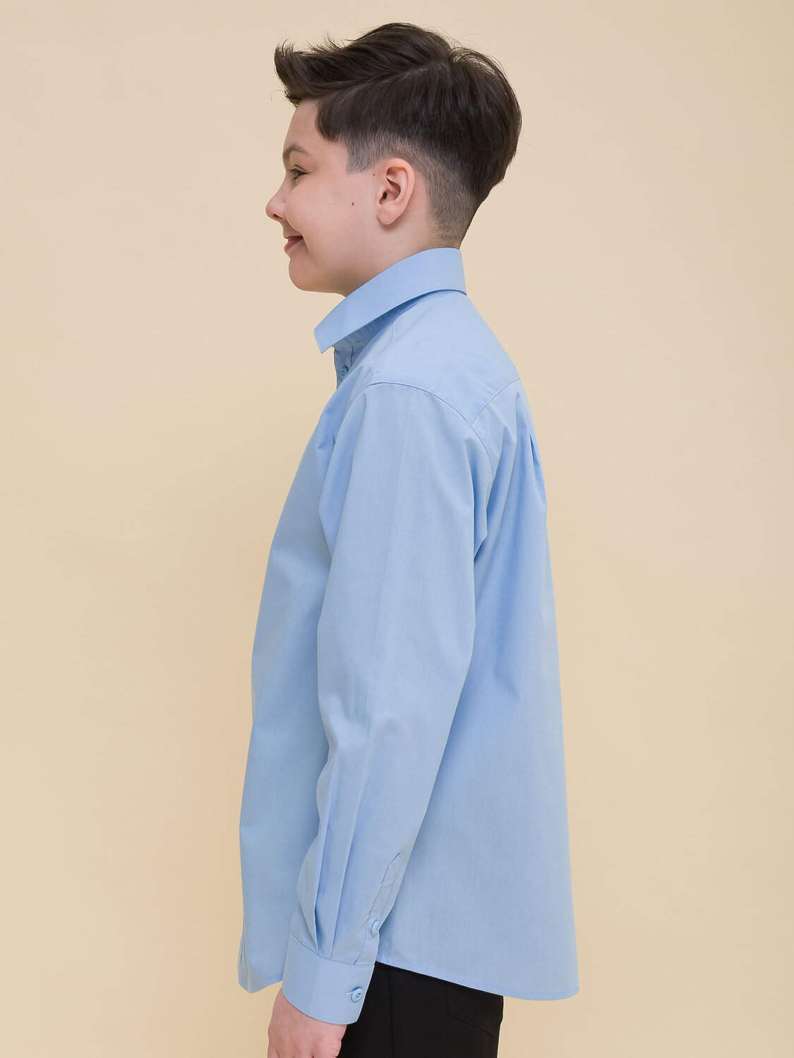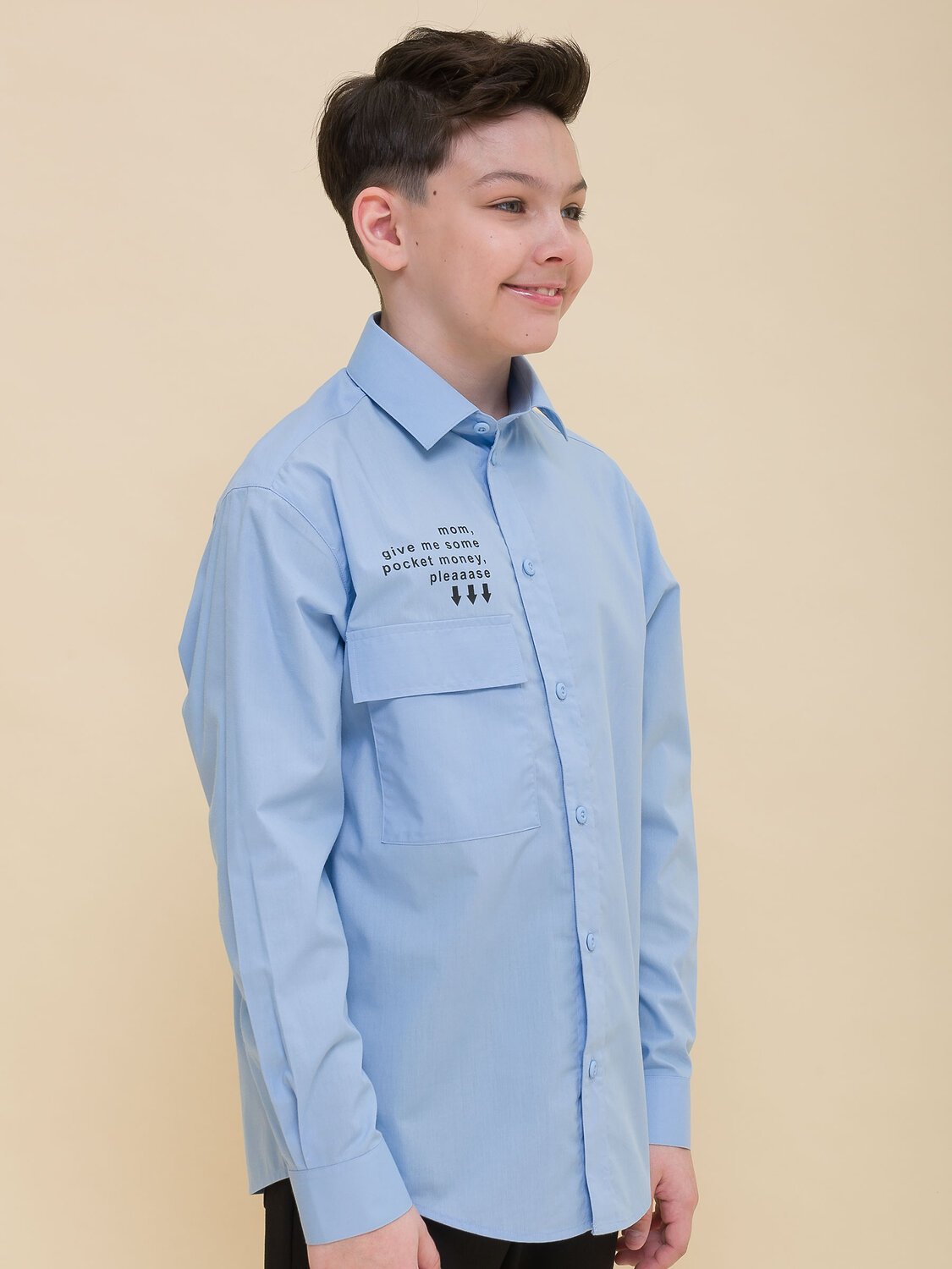 Школьная рубашка свободного силуэта для мальчика. В составе ткани преобладает хлопок — модель мягкая, приятная на ощупь и пропускает воздух. Полиэстер помогает не терять форму и превосходный внешний вид. По спинке кокетка с двумя защипами для свободы движения. Накладной карман с клапаном — актуальный модный тренд. Над карманом изделие украшает забавный принт, мягкий и устойчивый к частым стиркам. Перевод: «Мама, положи в мой карман деньги, пожааалуйста». Рубашка отлично сочетается с различными брюками, пиджаками, жилетами и подходит мальчикам с разными типами фигуры. Модный и практичный вариант школьной сорочки для мальчика.