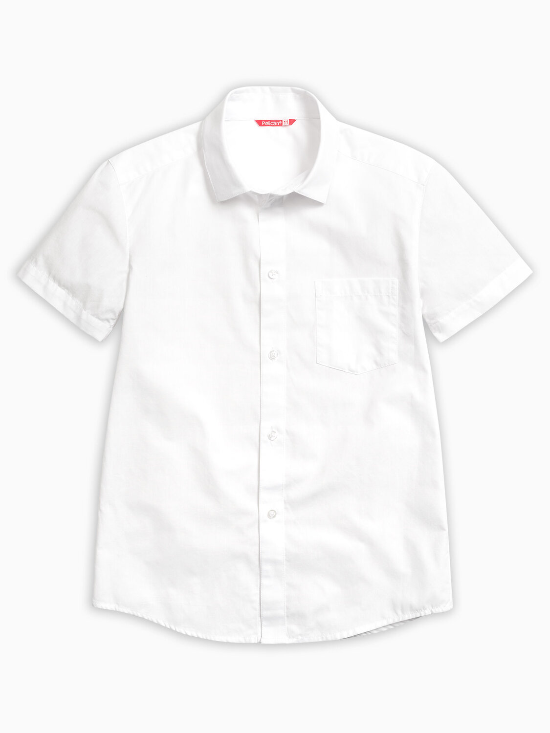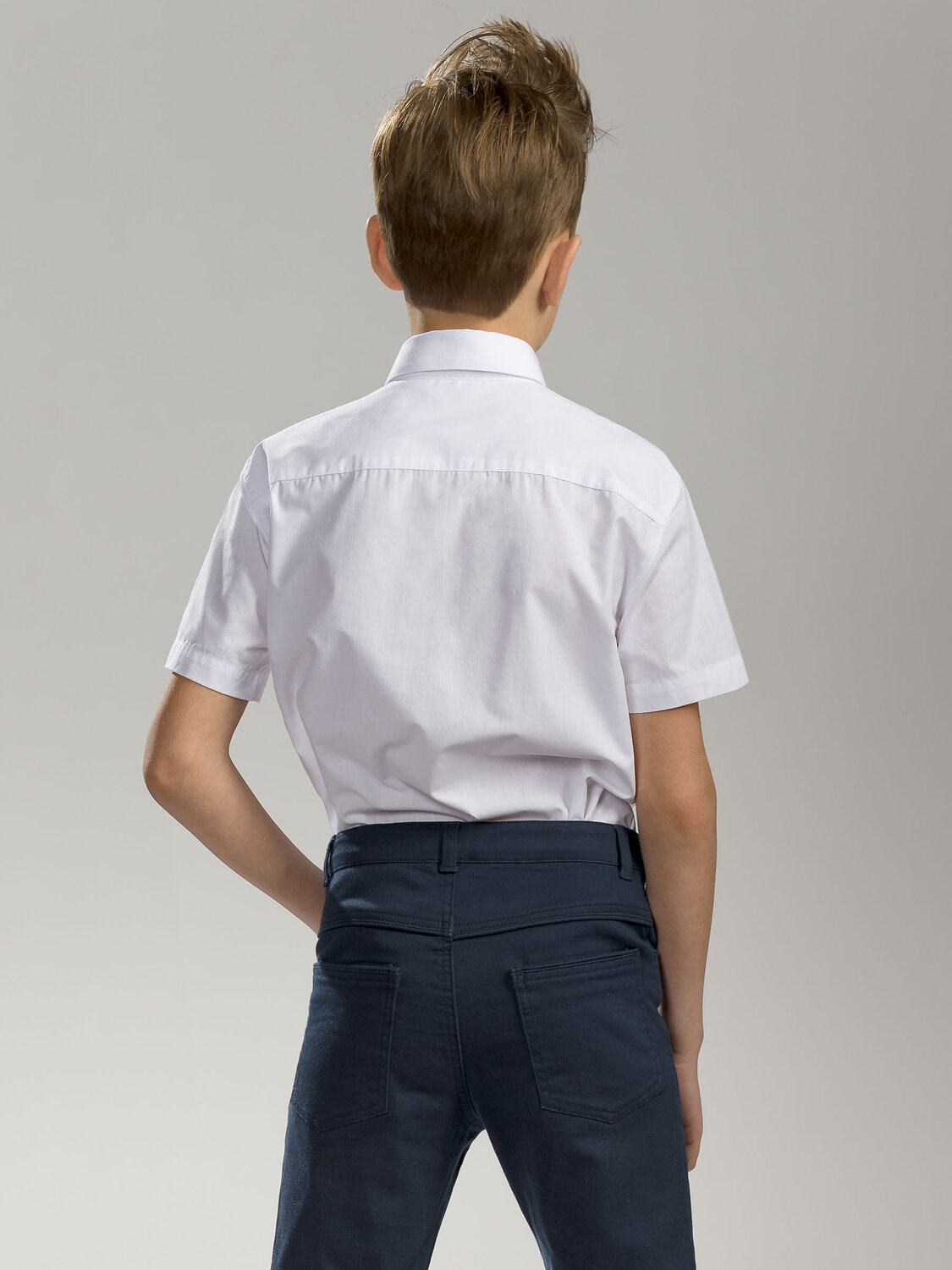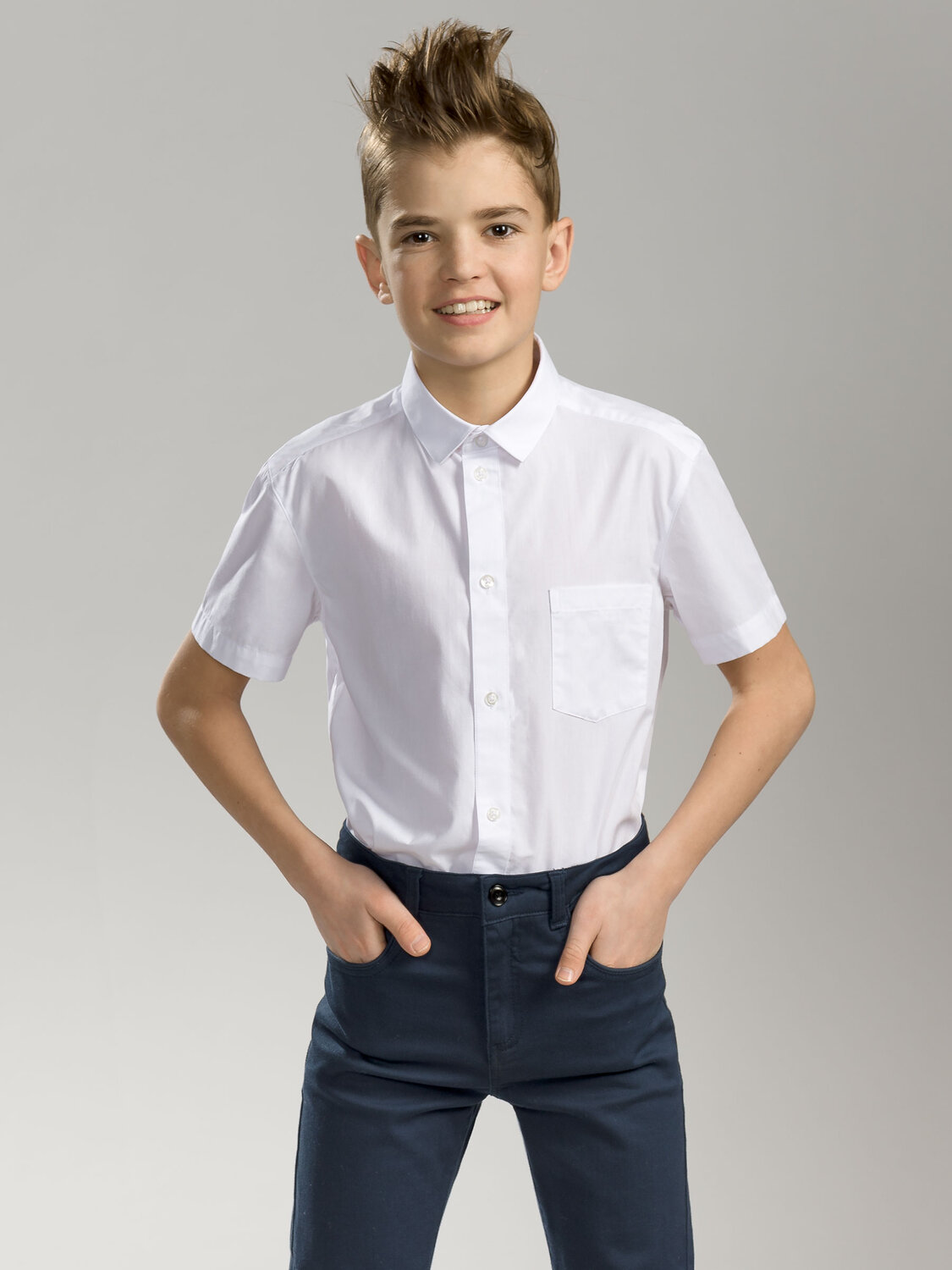 Рубашка для мальчиков с коротким рукавом. Классическая сорочка прямого силуэта с актуальным воротником типа Windsor. Слева нагрудный карман традиционной формы.