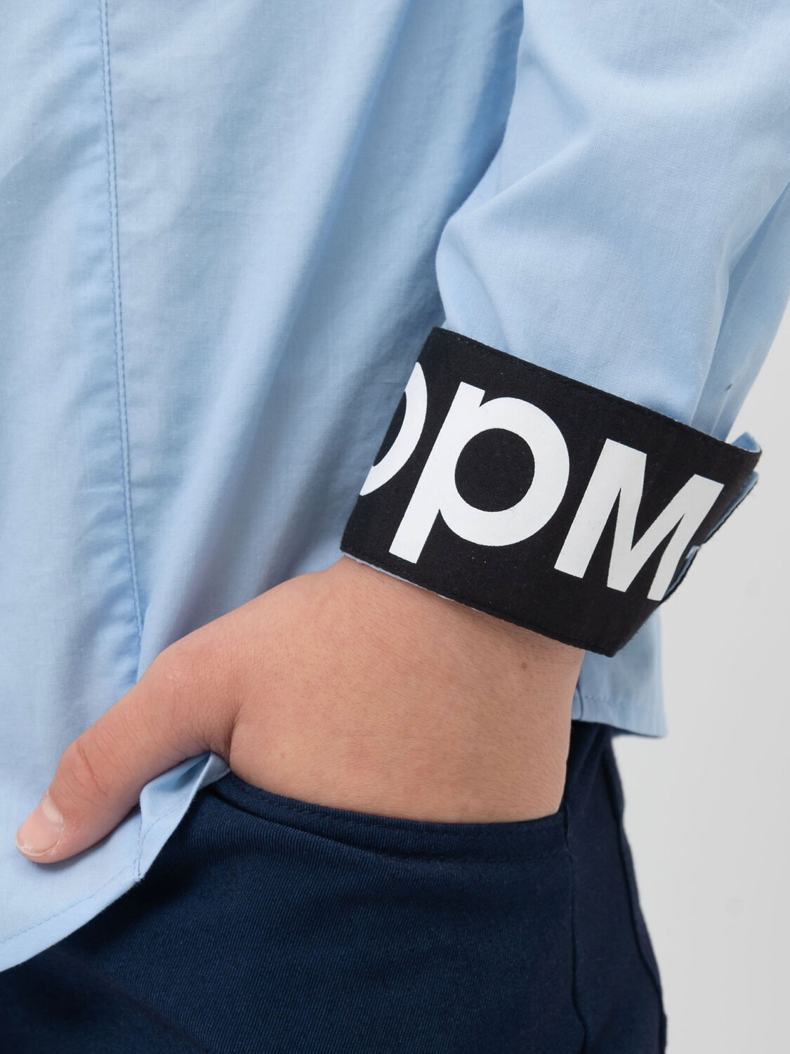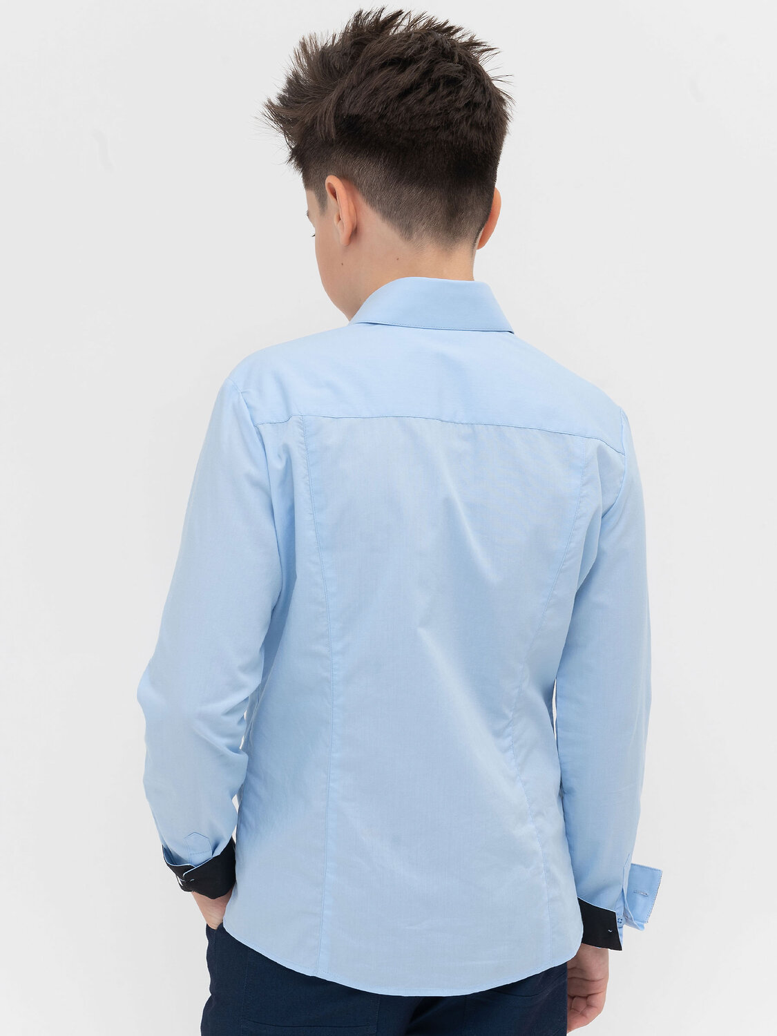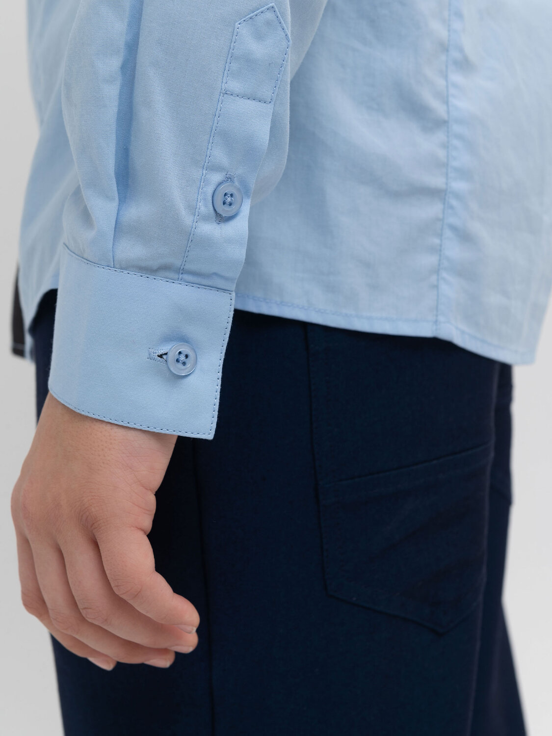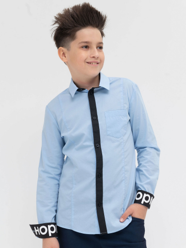 Школьная рубашка для мальчика из практичной ткани с современными деталями. Самые уязвимые для грязи детали выполнены из ткани контрастного цвета. Это разбавляет официальный стиль и позволяет не стирать белую рубашку каждый день. А если отвернуть манжеты, то внутренний текстовый принт НОРМ на них превратит рубашку в модную крутую модель. Материал рубашки практичен, его легко стирать и гладить. Хорошо держит форму и даёт телу дышать. Не ограничивает движения и переживёт любую активность подростка.