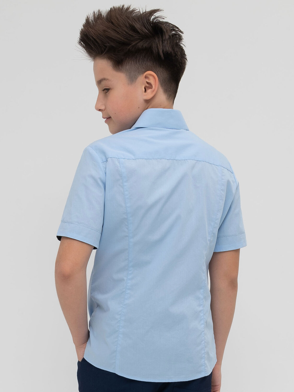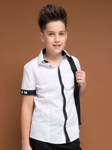 Школьная рубашка для мальчика из практичной ткани с современными деталями. Самые уязвимые для грязи детали выполнены из ткани контрастного цвета. Это разбавляет официальный стиль и позволяет не стирать белую рубашку каждый день. А если отвернуть манжеты, то внутренний текстовый принт НОРМ на них превратит рубашку в модную крутую модель. Материал рубашки практичен, его легко стирать и гладить. Хорошо держит форму и даёт телу дышать. Не ограничивает движения и переживёт любую активность подростка.