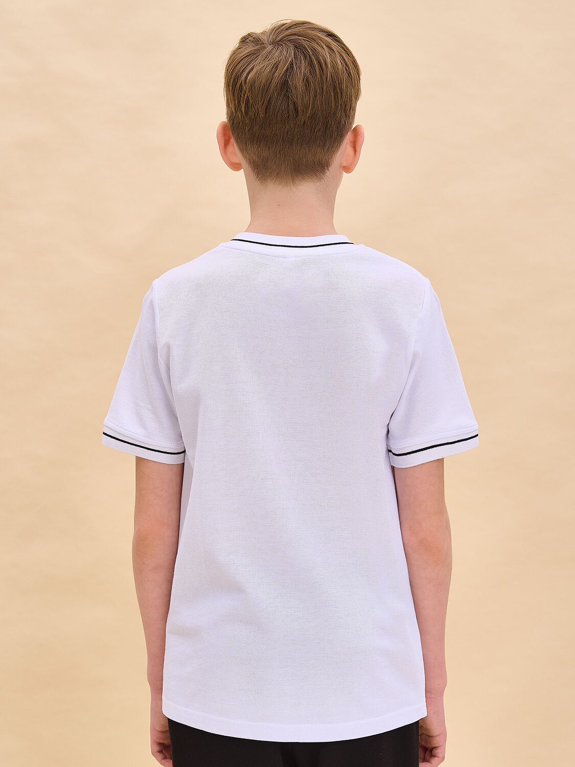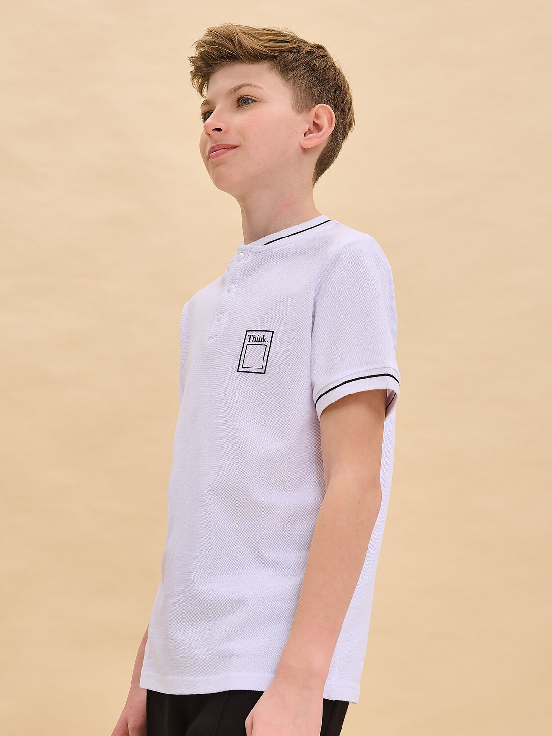 Базовая футболка хенли для мальчика. Подходит в качестве школьной одежды. Горловина отделана декоративной эластичной рибаной, которая долго сохраняет форму, устойчива к частым стиркам, не растягивается. Застёжка под горловиной на три кнопки — джемпер школьный удобно надевать и снимать. Трикотажная футболка выполнена из 100% высококачественного хлопка. Благодаря натуральному составу ткани пике изделие мягкое, воздухопроницаемое и очень комфортное. Не жарко даже самому активному ребёнку. На груди футболка базовая украшена лаконичным силиконовым принтом, устойчивым к многочисленным стиркам. Такие футболки на мальчика — хороший вариант одежды для школы. Модель представлена в нескольких универсальных расцветках — легко сочетать с любыми брюками, пиджаками, джемперами. Рекомендуемый уход: стирать при температуре не выше 30 °С, без предварительного замачивания, с изнанки, расправить перед сушкой. Выбирайте нужный размер по таблице размеров на фото. Цвет товара на экране вашего устройства может отличаться от цвета изделия вживую.