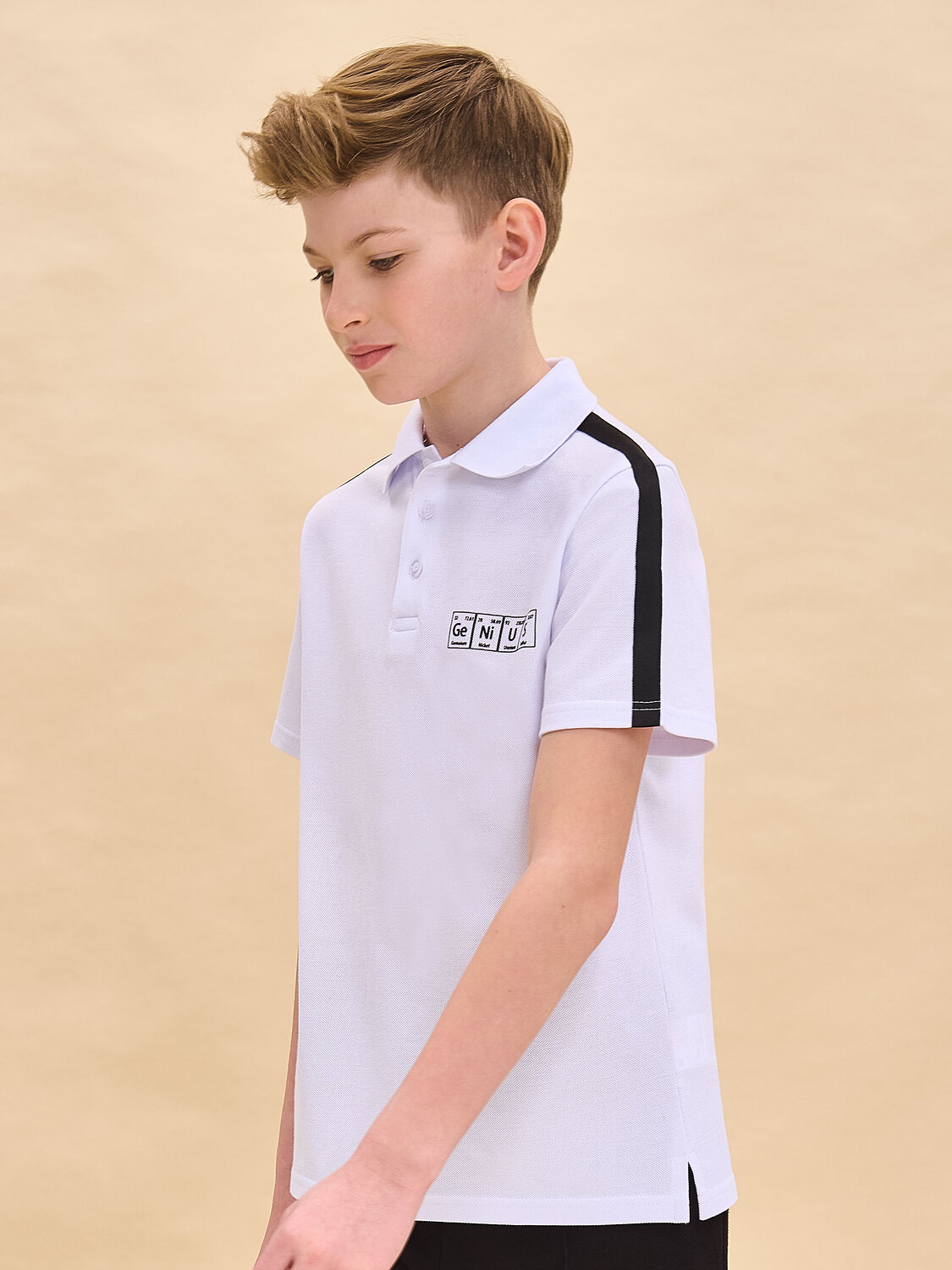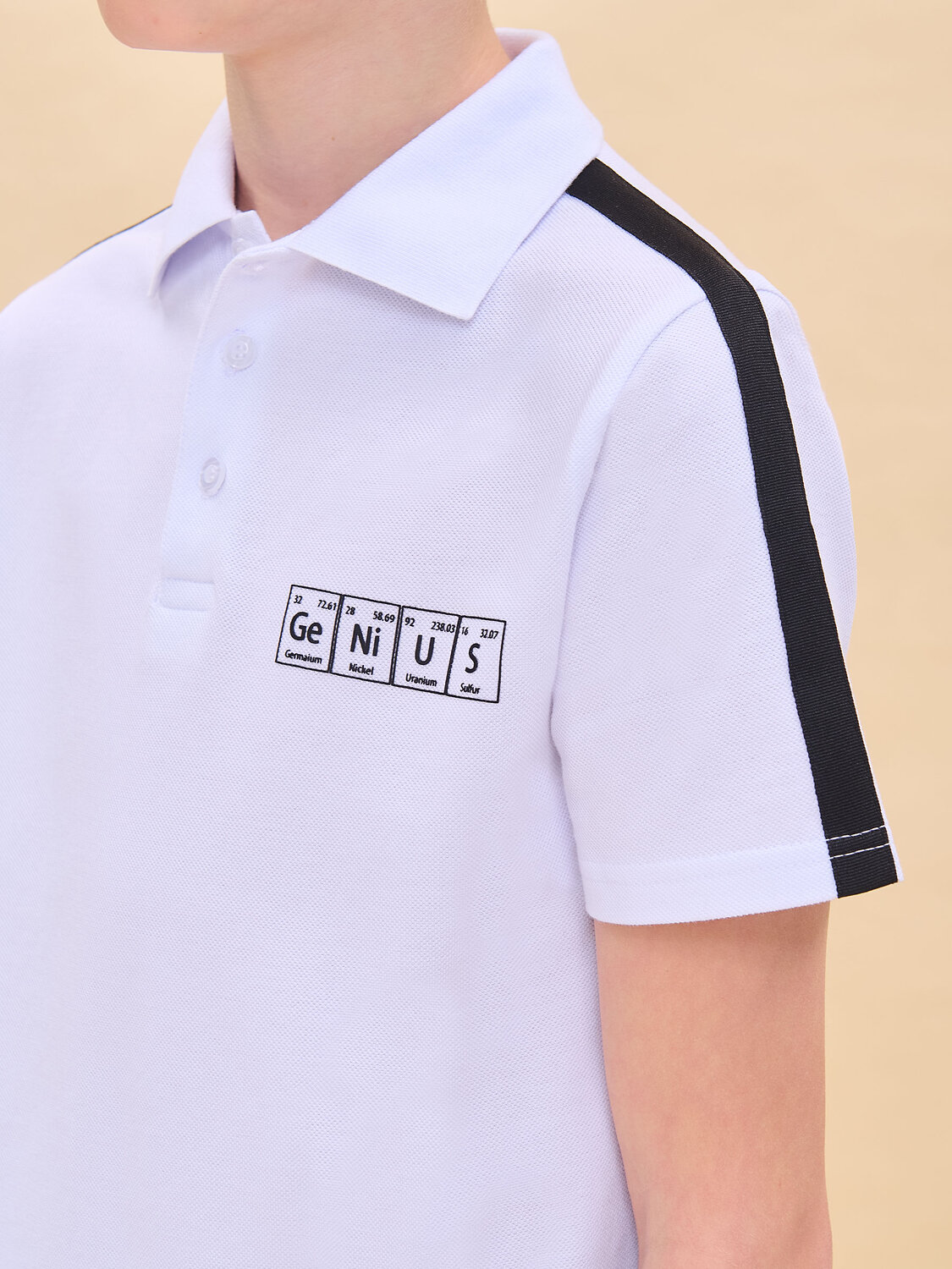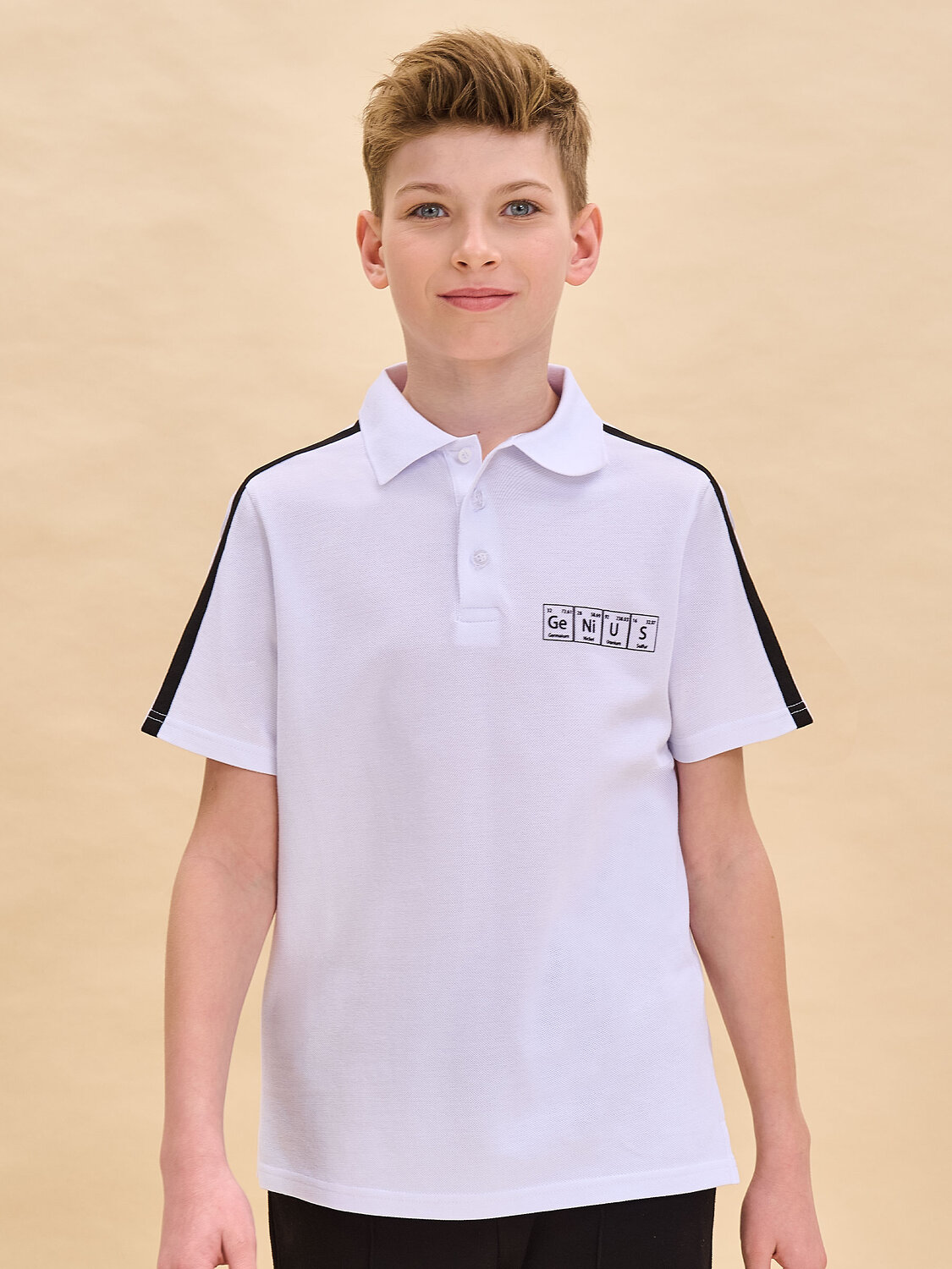 Поло для мальчика с коротким рукавом из актуальной ткани пике. Идеально сочетается как с пиджаками, так и с жилетами. Поло школьное для мальчика свободного силуэта комфортной длины прекрасно садится на ребёнка с любой фигурой. Классический отложной воротник из эластичной рибаны не растягивается и надолго сохраняет первоначальную форму. У горловины застёжка на пуговицы — ребёнку удобно надевать и снимать. В составе ткани 100% высококачественного хлопка плотностью 180 гр/м2 — изделие отлично пропускает воздух, давая коже дышать, ребёнку не жарко. Джемпер поло однотонное, украшено лаконичным принтом в виде таблицы Менделеева, надпись переводится: «гений». Принт стойкий, легко переносит частые стирки. Футболка поло для мальчика школьная представлена в нескольких универсальных цветах. Легко комбинируется с любыми пиджаками и брюками. Поло детское для мальчика — прекрасный вариант школьной формы. Помните о правильном уходе за изделием: рекомендуется стирать при температуре не выше 30 °C, без предварительного замачивания, с изнанки. Это поможет сохранить качество и цвет поло на длительное время. Не забывайте о выборе правильного размера. Используйте таблицу размеров на фотографии, чтобы выбрать подходящий вариант для вашего мальчика. Обратите внимание, что цвет товара на экране вашего устройства может отличаться от реального.