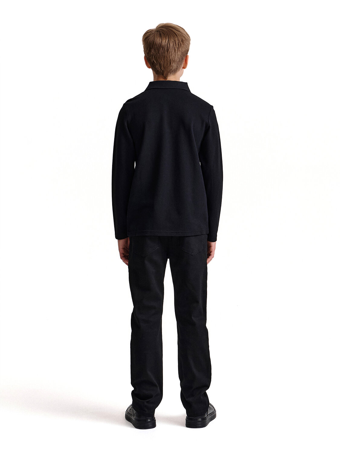 Поло с длинным рукавом для мальчика из ткани пике — базовая и стильная вещь для мальчика Это поло — классика, которая всегда в моде и станет отличным дополнением к школьному гардеробу. Ткань пике приятна на ощупь, дышит и сохраняет форму, а длинные рукава делают модель практичной для прохладной погоды. Умеренный объём и аккуратный крой обеспечивают комфорт и свободу движений в течение всего дня. Поло легко сочетать с брюками, джинсами или школьной формой, что делает его универсальным выбором для учебы, прогулок и повседневной жизни. Стильное, удобное и практичное — это поло создаст уверенный и опрятный образ для вашего ребёнка. Выбирайте нужный размер по таблице размеров на фото. Цвет товара на экране вашего устройства может отличаться от цвета изделия вживую.