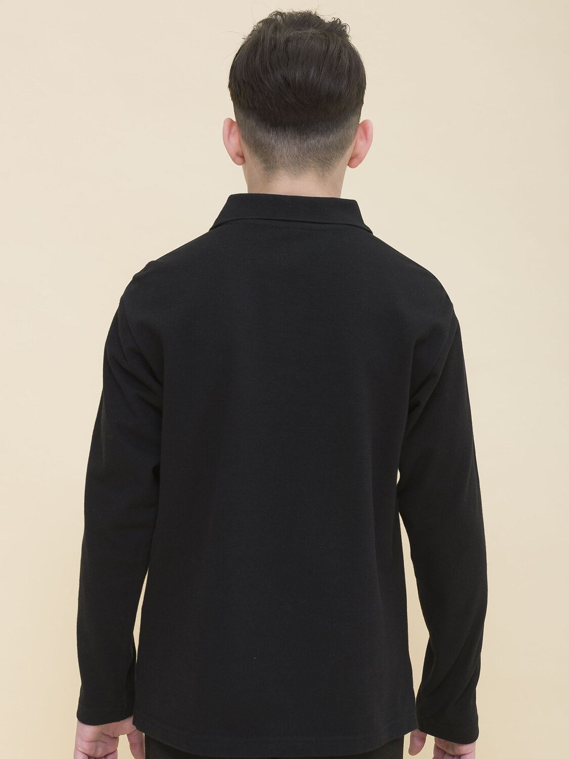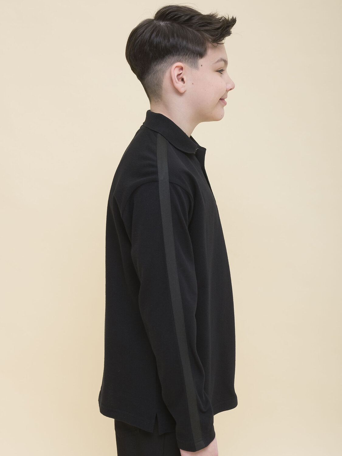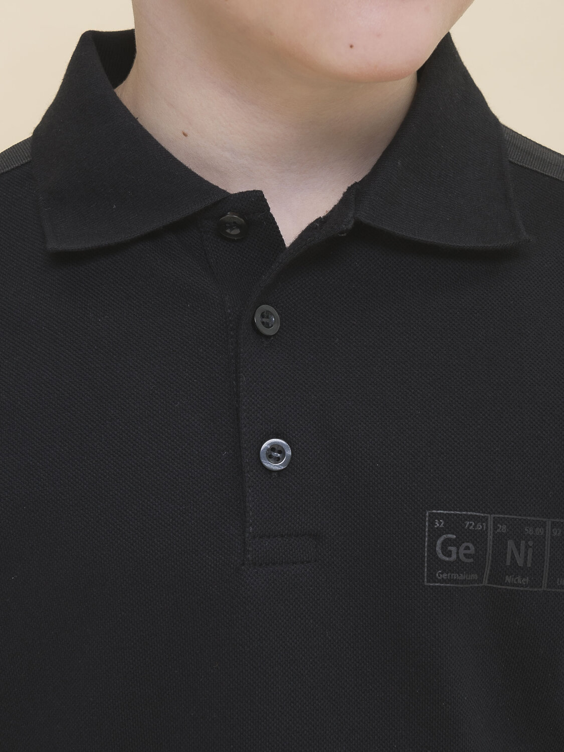 Джемпер-поло из 100% хлопка для мальчика. Натуральный состав ткани обеспечивает изделию мягкость, воздухопроницаемость и комфортность. Воротник из рибаны — долго не теряет форму и устойчив к частым стиркам. Модель декорирована лампасами вдоль плечевых швов и рукавов — один из актуальных трендов. На груди оригинальный силиконовый принт в виде элементов таблицы Менделеева, который устойчив к частым стиркам. Джемпер застёгивается на 3 пуговицы под горловиной — удобно надевать и снимать. Стильный вариант школьной формы для мальчиков.