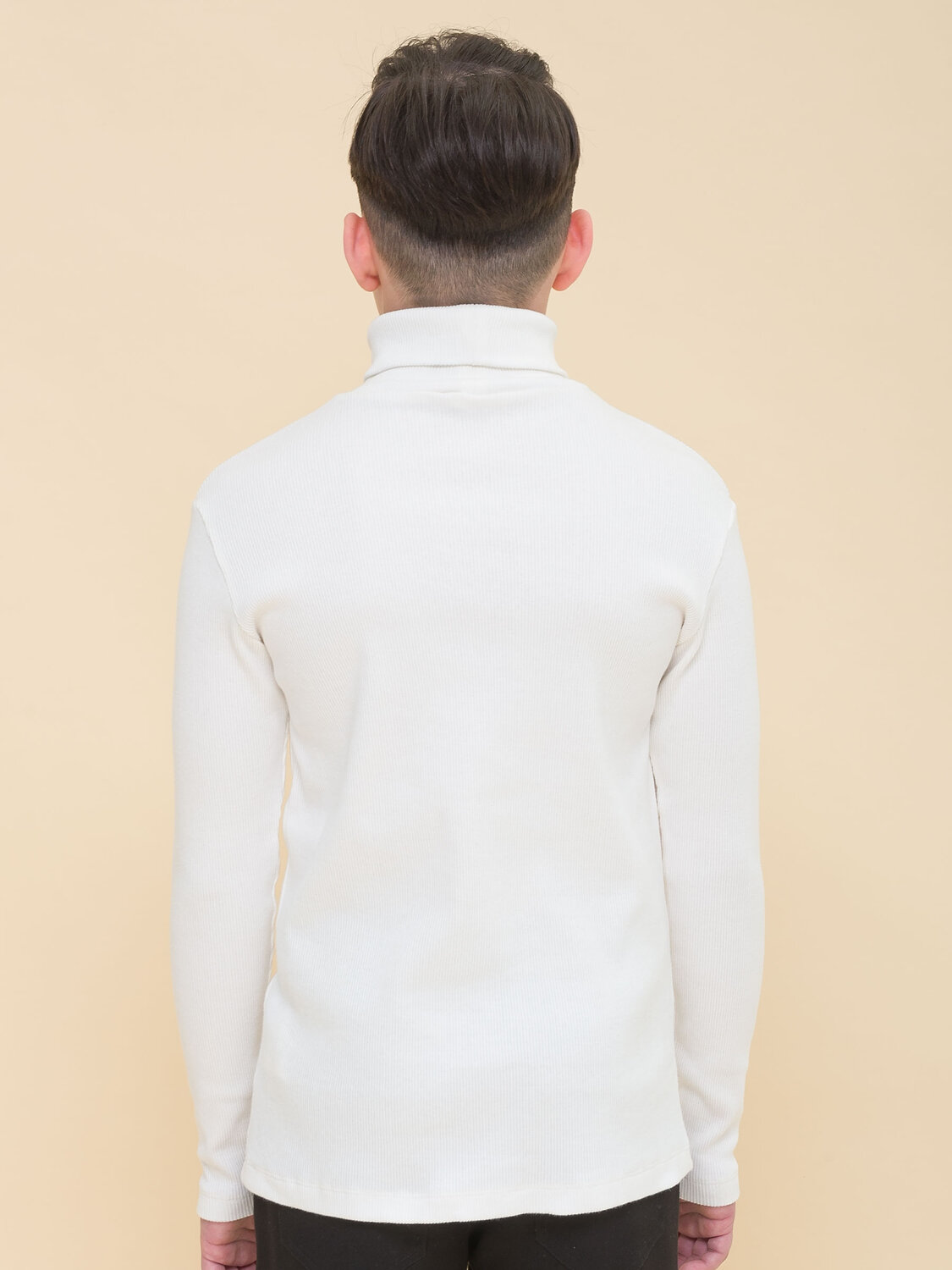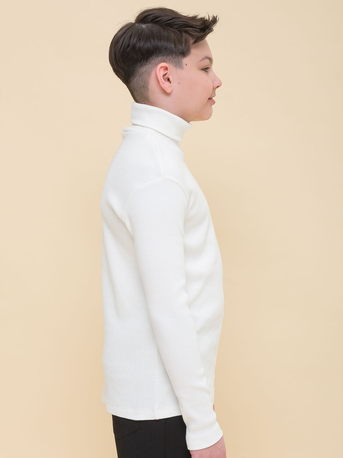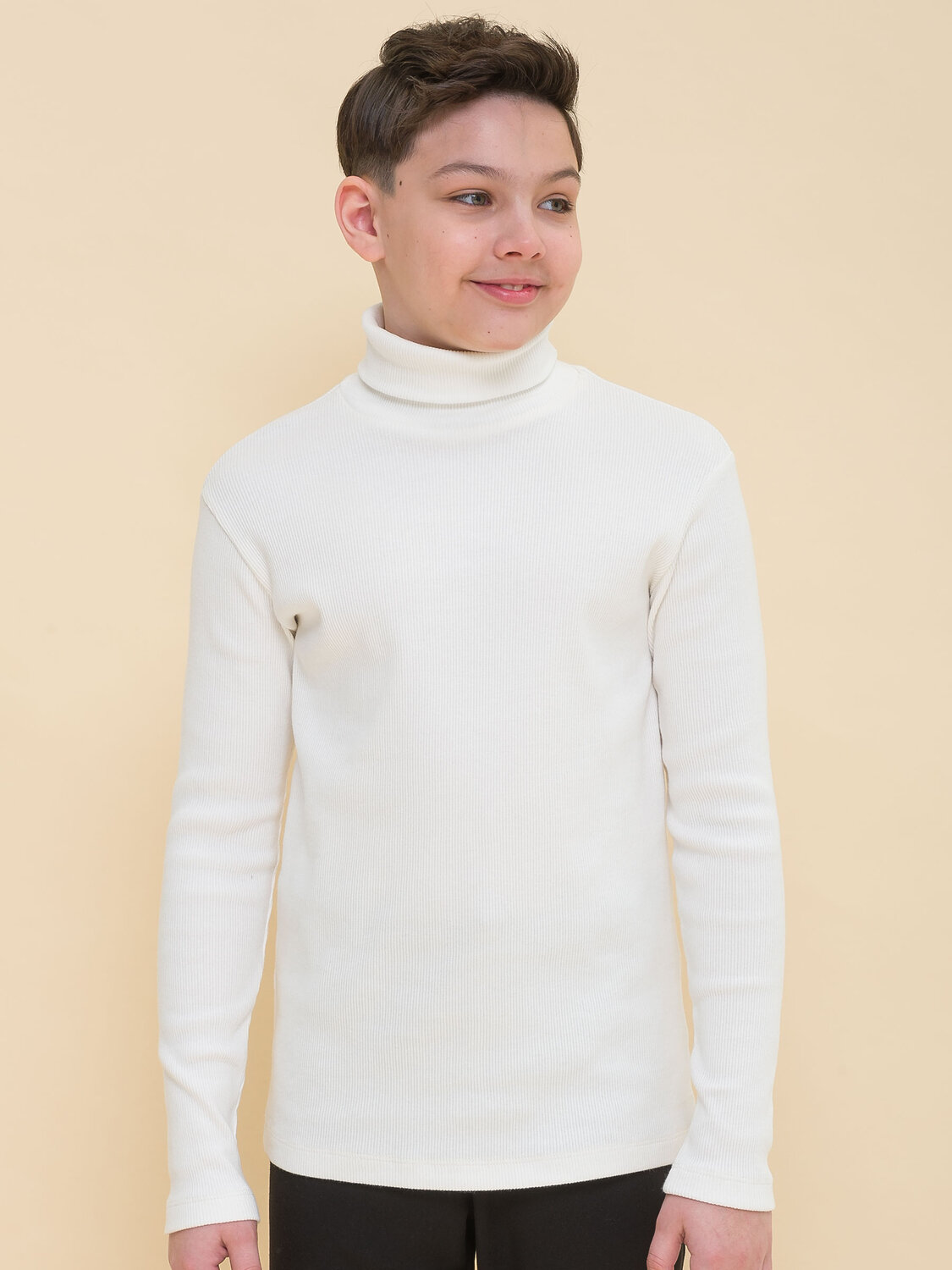 Водолазка из модной ткани в рубчик для мальчика. В составе ткани преобладает хлопок — модель мягкая, тактильно приятная и пропускает воздух. Эластан помогает сохранять форму. Воротник-стойка позволяет удобно надевать и снимать изделие, при этом он отлично сохраняет форму. Водолазку лаконичного дизайна легко сочетать с различными брюками, пиджаками, жилетами, это идеальная база гардероба. Стильный и практичный вариант школьной одежды для мальчиков.