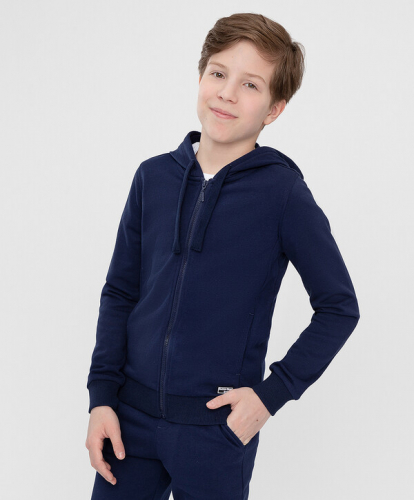 цветЧерный95% хлопок/5% эластан Хлопок Толстовка спортивная на молнии с капюшоном и карманом-кенгуру черная Button Blue