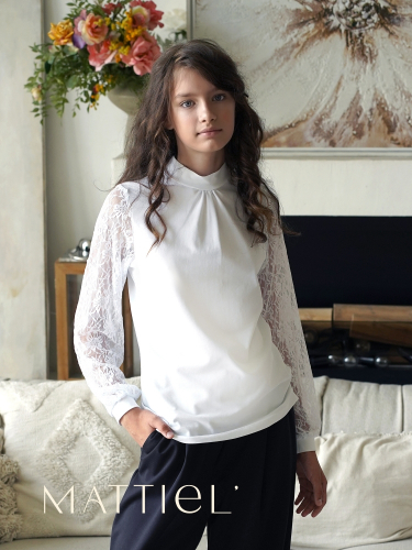 Предлагайте своим дочерям удобную и элегантную школьную блузку для девочек, выполненную из качественного натурального трикотажа и эластичного, мягкого кружева. Эта блузка отличается изысканным дизайном и превосходным качеством исполнения, подчеркивая индивидуальность ребенка.