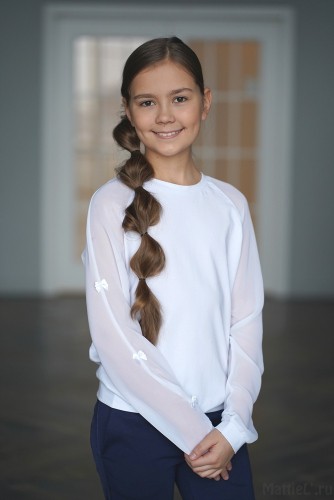 Очень прекрасный джемпер! Качество на 5+ Все шовчики аккуратные, ниточки не торчат. Плотный трикотаж, а рукавчики, словно невесомые. Смотрится очень нежно на девочке.