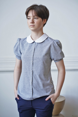 Блузка нарядная для девочек из высококачественного трикотажа(кулирка качество пенье). Блузка с цельновыкроенным воротником -стойка . Рукав втачной, удлиненный. Рукав зауженный на манжете. Трикотажная блузка не деформируется после стирки, очень удобна и комфортна для вашей модницы. 92%хлопок, 8%лайкра