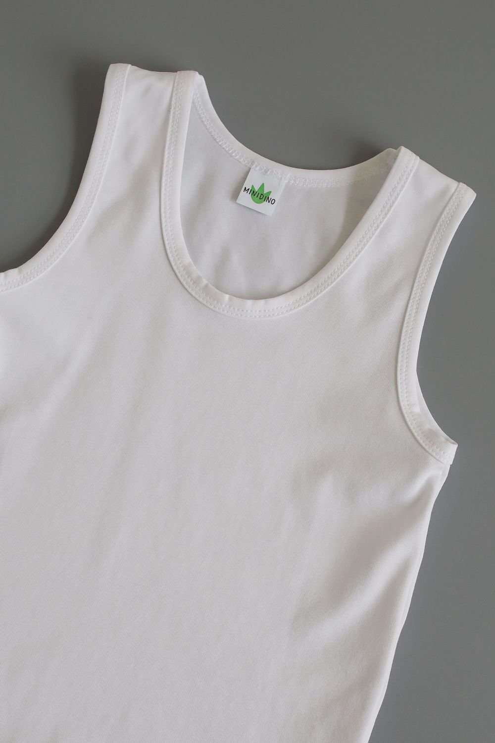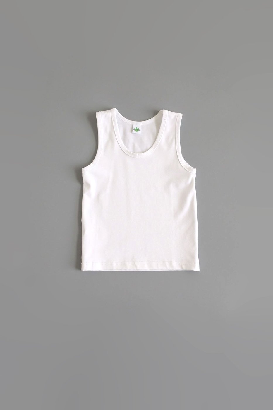 Майка на широких бретельках, без рукавов, округлым вырезом. Не стесняет и не сковывает движений.