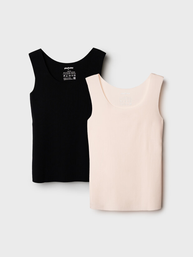 Классический набор трикотажных маек для девочки подростка от PlayToday — два мягких и дышащих изделия на каждый день. Базовые бесшовные майки станут незаменимыми в повседневном гардеробе девочки — для школы, дома и активного отдыха.