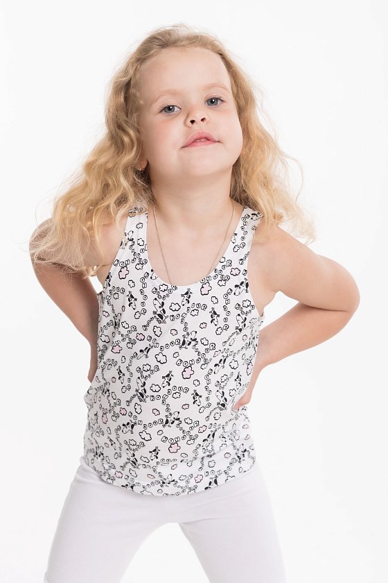 Майка выполнена из 100% хлопка с набивным рисунком. Майка с широкими бретелями, свободного комфортного кроя.