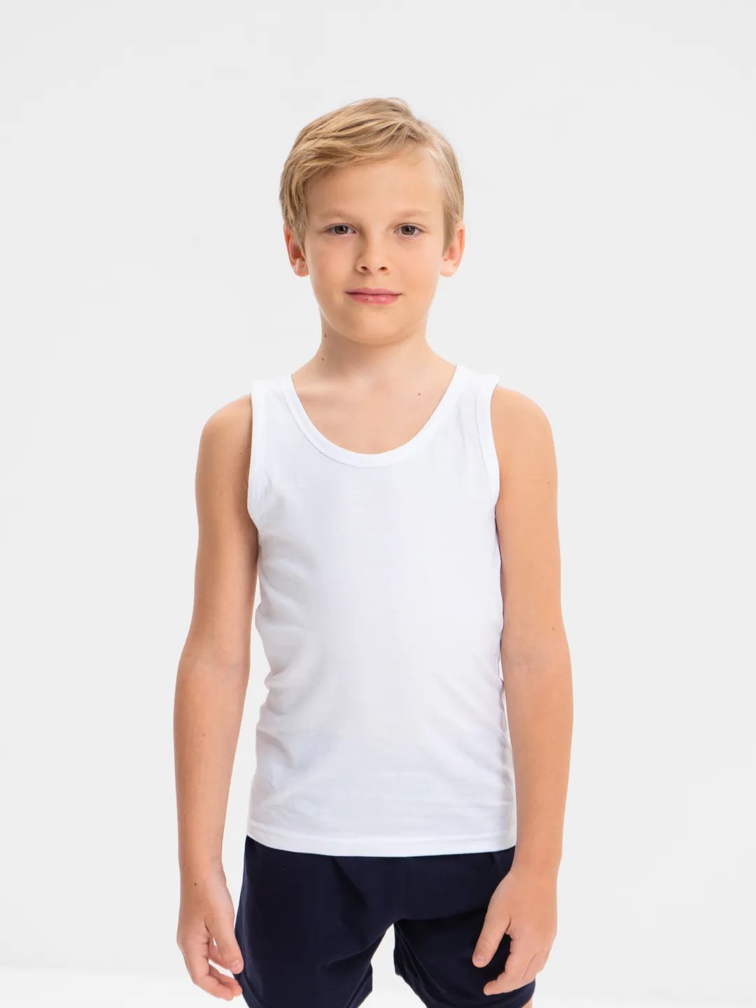 Подростковый топ сшит из легкой натуральной ткани-трикотажа с добавлением лайкры. Крой прямого силуэта без рукавов, горловина окантована. Изделие отлично сидит по фигуре.