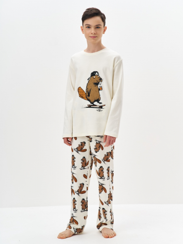 Молочная пижама для мальчика с принтом