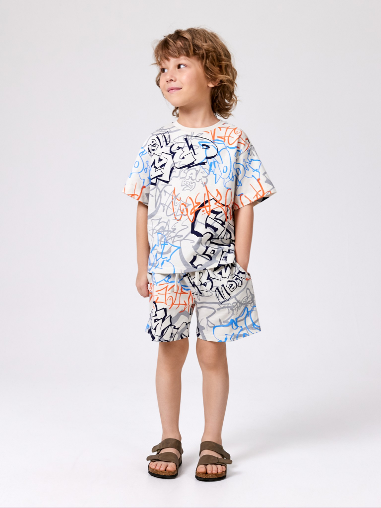 Набор детский для мальчиков ((1)футболка и (2)шорты) Saype_set светло-серый принт