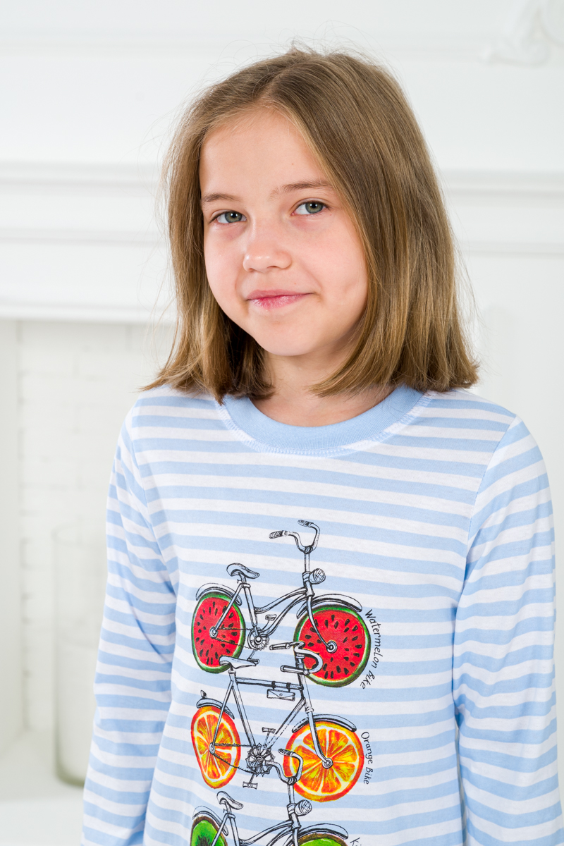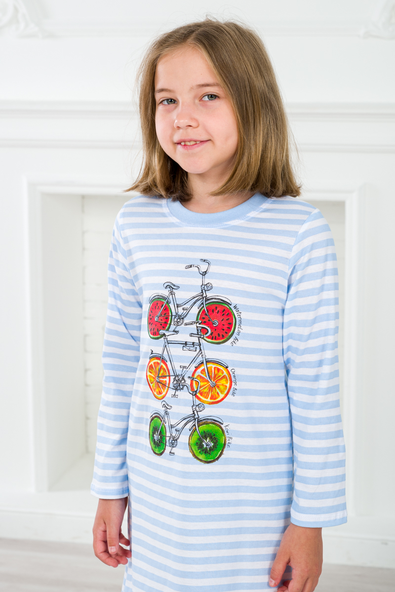 Ночная сорочка детская из кулирки с длинным рукавом Fruits&bikes голубой