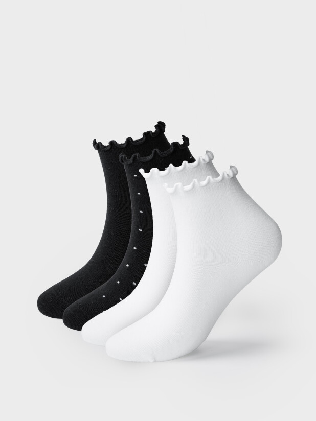 Этот набор носков из коллекции PlayToday создан для повседневной носки — в школу, на физкультуру, на прогулку или в путешествие. В комплекте — четыре пары (две белые и две тёмно-синие), идеально подходящие под любую одежду: от школьной формы до джинсов и спортивных штанов.