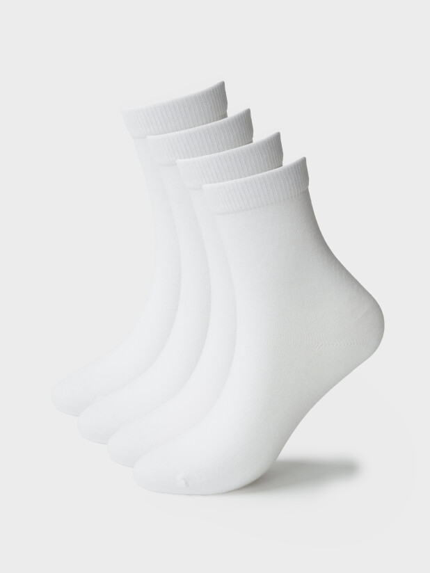 Этот набор носков для мальчика-подростка — отличное пополнение гардероба на каждый день. Практичные, удобные и актуальные, они подойдут как для школы, так и для прогулок или занятий физкультурой. В комплект входят 4 пары белых носков: базовый оттенок легко сочетаются с любой одеждой — джинсами, брюками, школьной формой или спортивным костюмом.