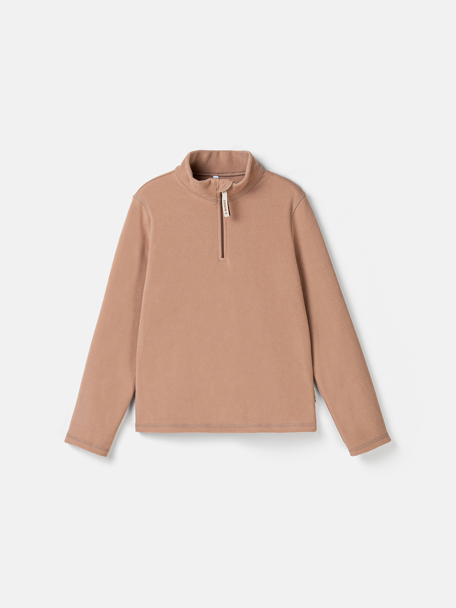 Короткая застежка-молния позволяет регулировать тепло: застегните для защиты от ветра на площадке или расстегните для комфорта в помещении.