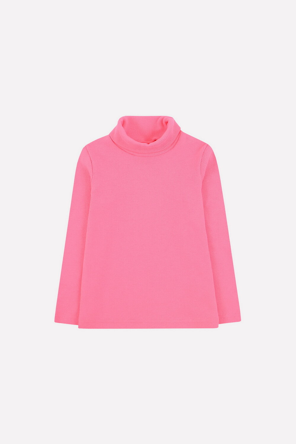 Однотонная детская водолазка из эластичного трикотажа кашкорсе. Длинные рукава. Высокая горловина с отворотом.