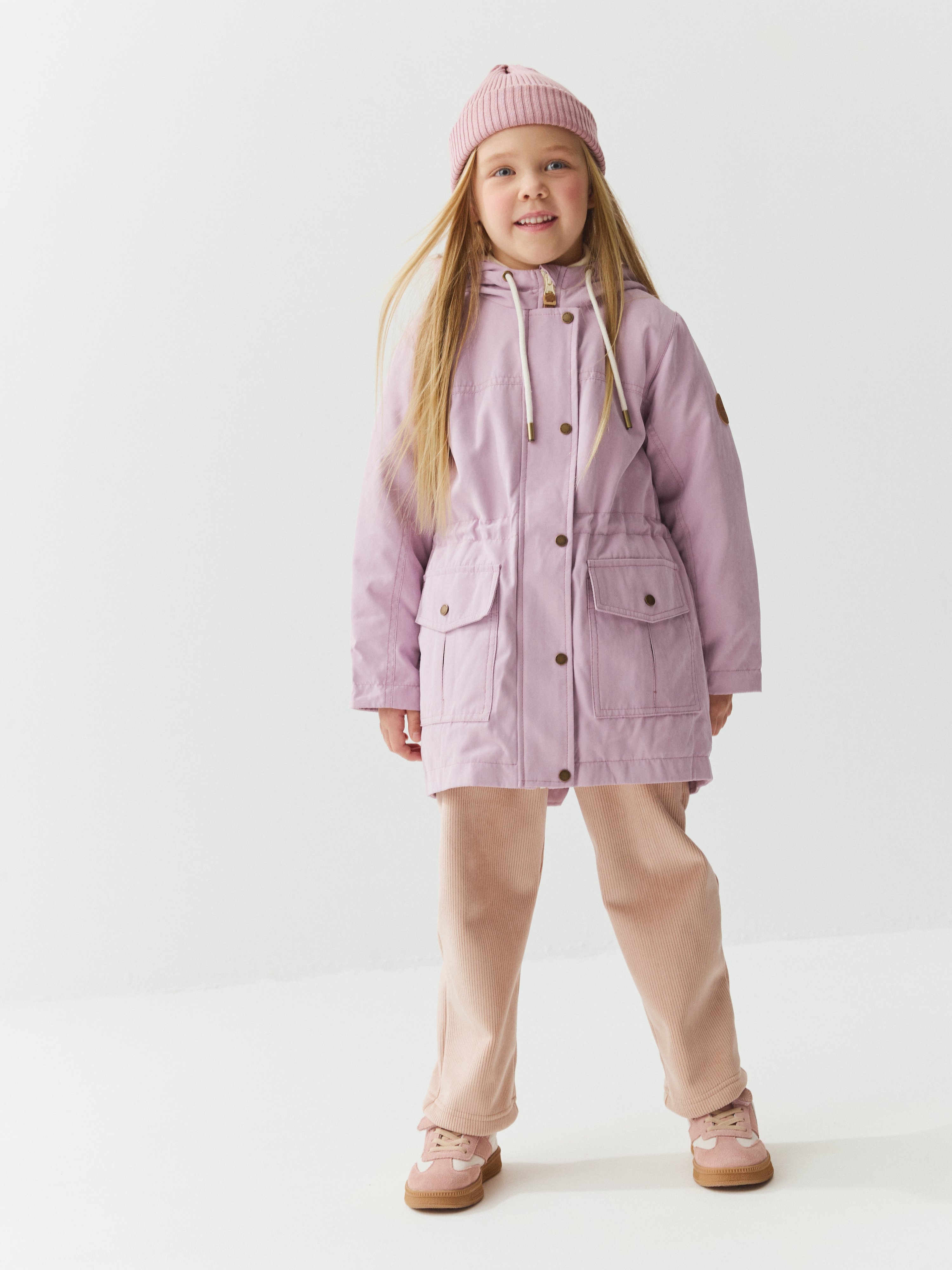 Демисезонная парка прямого силуэта из мембранной ткани с показателями 3000/3000 для защиты от влаги и ветра.
