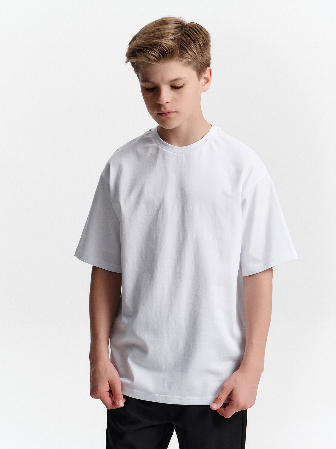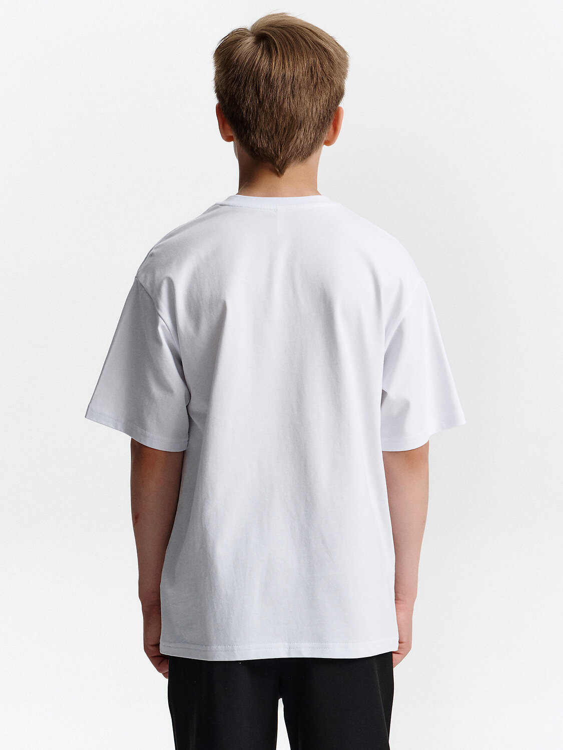 Белая футболка умеренного объёма — базовая и стильная вещь для мальчика Эта белая футболка — настоящая классика, которая всегда будет в моде и нужна в гардеробе каждого мальчика. Умеренный объём делает её удобной и комфортной — она не слишком тесная и не слишком свободная, идеально подходит для школы и активного дня. Базовый дизайн легко сочетать с любыми брюками, джинсами или шортами, а чистый белый цвет всегда смотрится аккуратно и свежо. Такая футболка — универсальный выбор не только для учебы, но и для прогулок, спорта и встреч с друзьями. Стильная, простая и практичная — эта футболка станет основой повседневного образа вашего ребёнка. Используйте таблицу размеров на фотографии, чтобы выбрать подходящий размер.