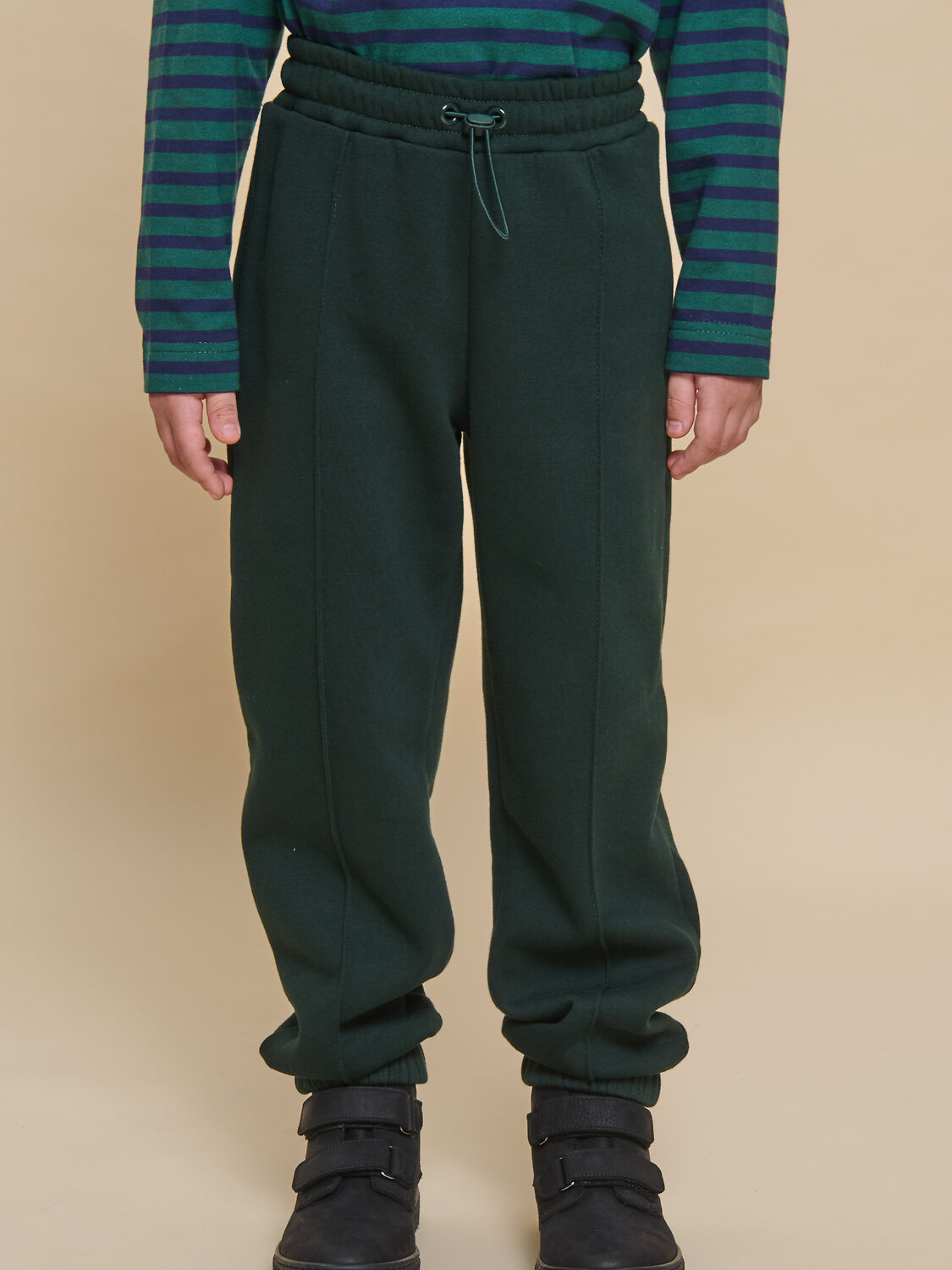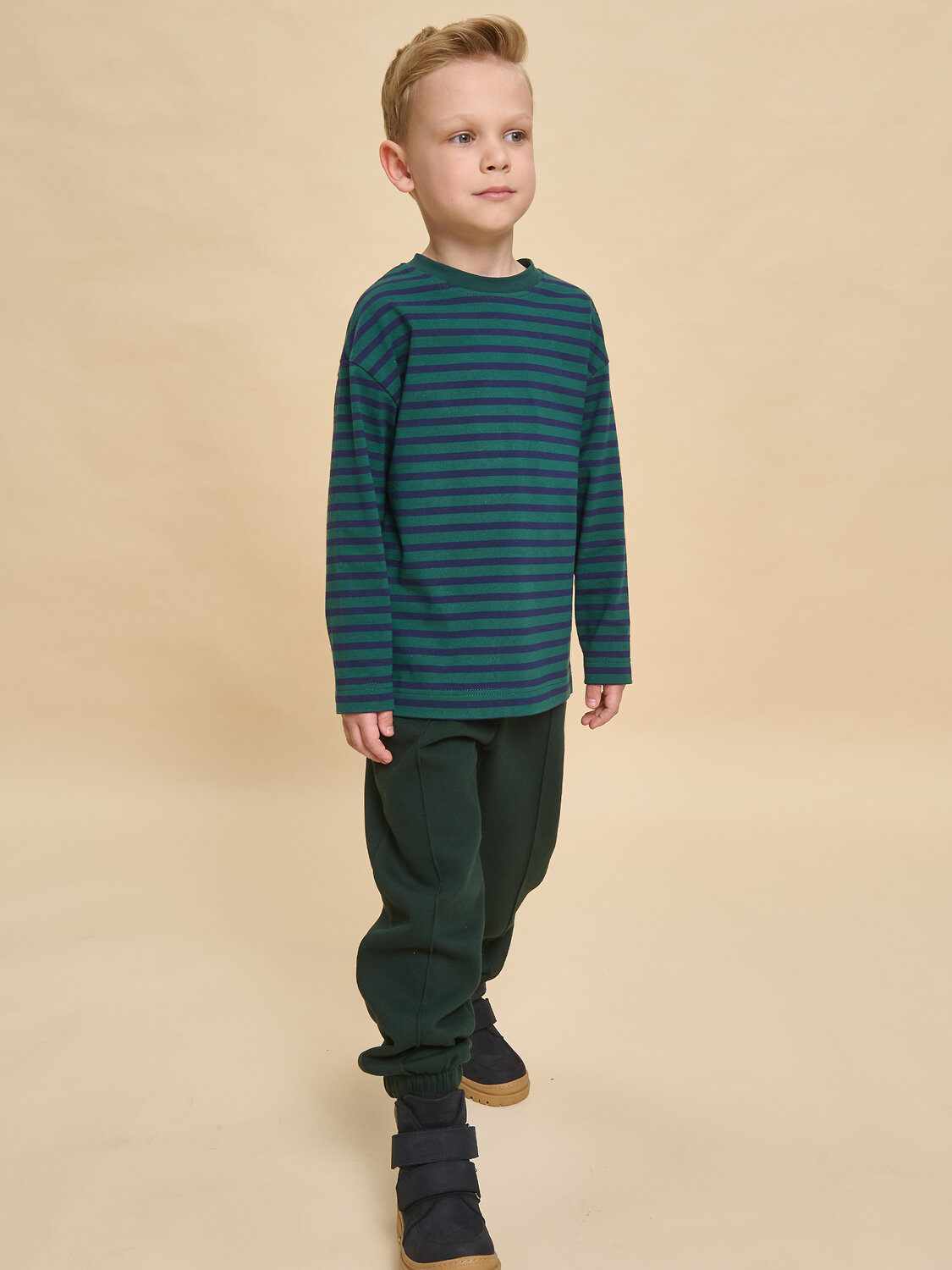 Брюки джоггеры для мальчика. Актуальные брюки свободного кроя подарят ребёнку комфорт и свободу движения. По переду застроченные стрелки — модный тренд сезона. Широкая резинка в поясе не давит и не перекручивается. С помощью шнурка со стоппером в поясе можно регулировать объём и посадку брюк. По низу штанин внутренняя широкая резинка, что придаёт модели актуальную форму. Изделие лаконичного дизайна, без принта. Брюки неприхотливы в уходе. В составе ткани (футер с начёсом) преобладает качественный хлопок — штаны тёплые, мягкие и прекрасно пропускают воздух, давая коже дышать. Благодаря полиэстеру изделие легко стирается, быстро сохнет и сохраняет отличную форму в течение длительного времени. Брюки детские выполнены в универсальных цветах — легко комбинируются с различными футболками, джемперами, толстовками, куртками. Отличные брюки-джоггеры на мальчика дошкольного и младшего школьного возраста, а также подростка. Брюки джоггеры — база детского гардероба, с ними можно создать по-настоящему стильный образ. Помните о правильном уходе за изделием: рекомендуется стирать при температуре не выше 30 °C, без предварительного замачивания, с изнанки. Это поможет сохранить качество и цвет брюк на длительное время. Не забывайте о выборе правильного размера. Используйте таблицу размеров на фотографии, чтобы выбрать подходящий вариант для вашего мальчика. Обратите внимание, что цвет товара на экране вашего устройства может отличаться от реального.