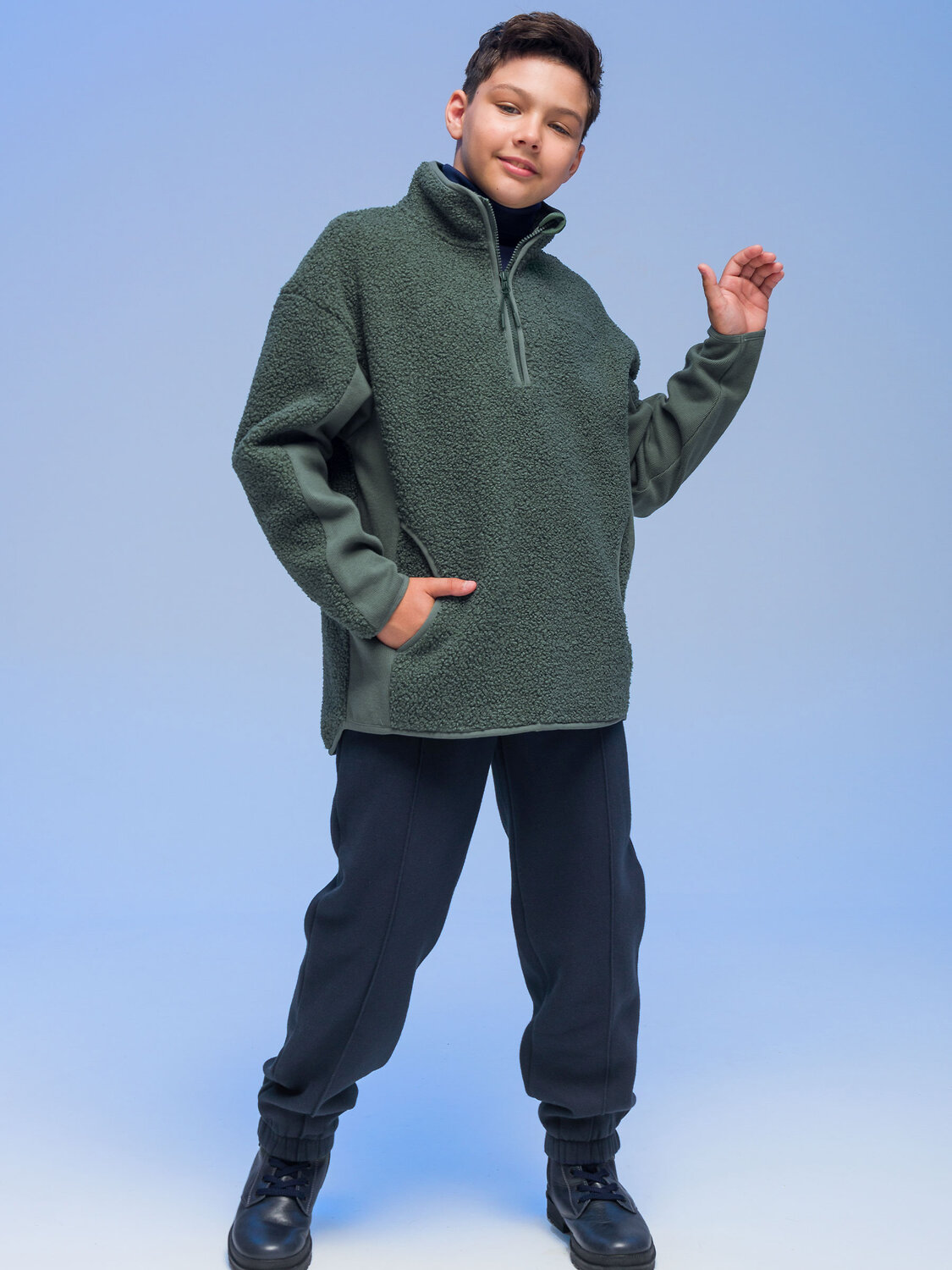 Брюки джоггеры для мальчика. Актуальные брюки свободного кроя подарят ребёнку комфорт и свободу движения. По переду застроченные стрелки — модный тренд сезона. Широкая резинка в поясе не давит и не перекручивается. С помощью шнурка со стоппером в поясе можно регулировать объём и посадку брюк. По низу штанин внутренняя широкая резинка, что придаёт модели актуальную форму. Изделие лаконичного дизайна, без принта. Брюки неприхотливы в уходе. В составе ткани (футер с начёсом) преобладает качественный хлопок — штаны тёплые, мягкие и прекрасно пропускают воздух, давая коже ребёнка дышать. Благодаря полиэстеру изделие легко стирается, быстро сохнет и сохраняет отличную форму в течение длительного времени. Брюки детские выполнены в трендовом синем цвете — легко комбинируются с различными футболками, джемперами, толстовками, куртками. Размерная линейка: 1 (86): 2 (92): 3 (98): 4 (104): 5 (110): 6 (116): 7 (122): 8 (128): 9 (134): 10 (140): 11 (146). Отличные брюки-джоггеры на мальчика дошкольного и младшего школьного возраста, а также подростка. Брюки джоггеры подходят для детского сада, прогулок, активного отдыха, спорта, а также для дома. Их можно носить круглый год: летом, осенью, зимой, весной и демисезон. Прекрасный подарок сыну, внуку, племяннику или брату на День рождения и любой другой праздник.