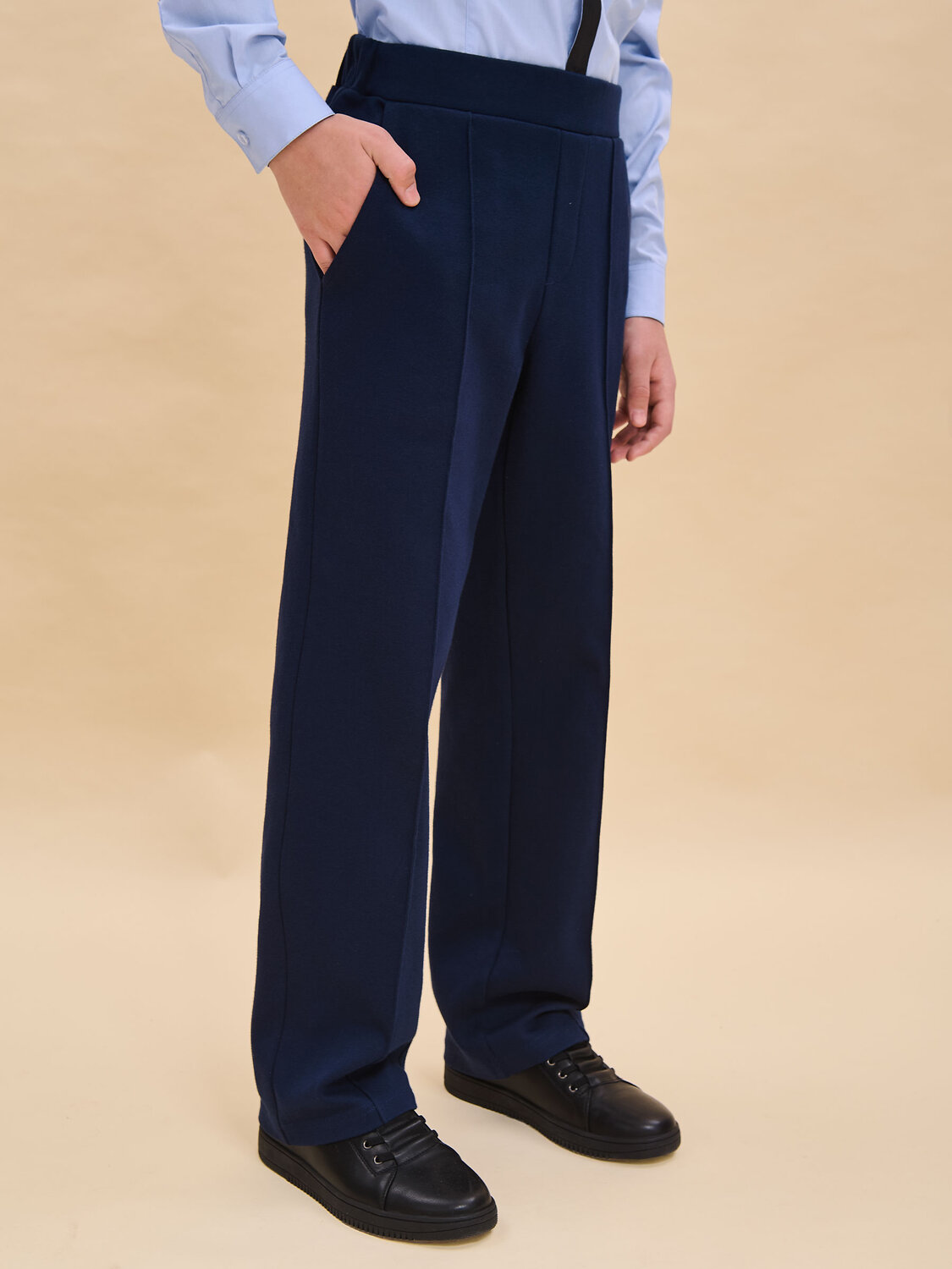 Брюки из трикотажного полотна классического прямого силуэта.