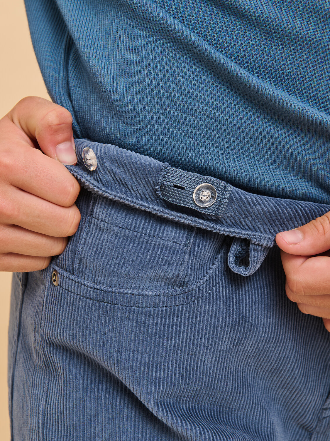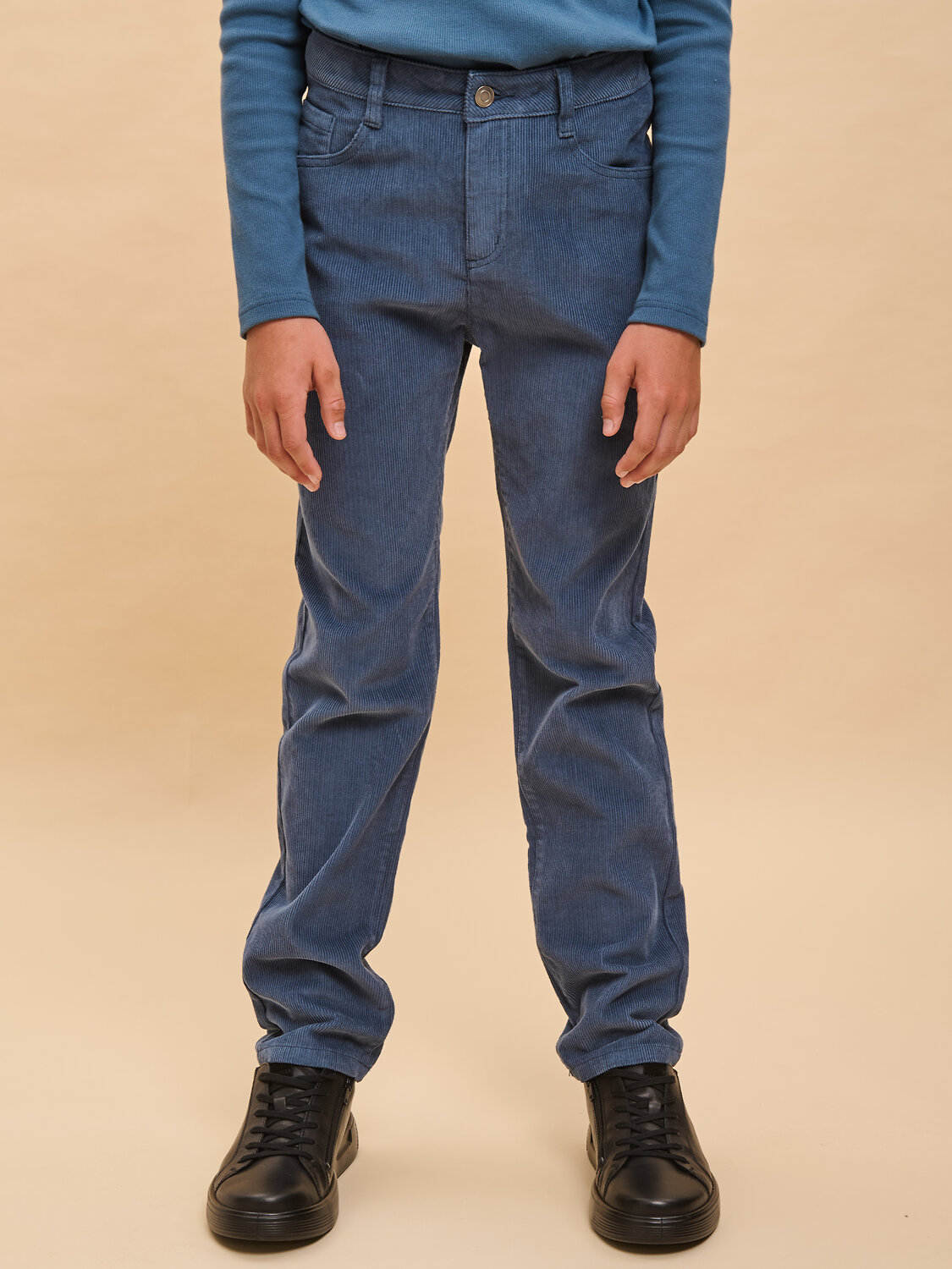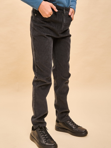 Вельветовые брюки с высокой посадкой для мальчика. Стильная современная модель – идеально сидит, отлично носится, всегда аккуратно выглядит. 100% хлопок в составе – ткань мягкая, дышащая, приятная на ощупь, прочная и простая в уходе. Застежка на гульфик и металлическую пуговицу. Внутренняя регулировка объема по талии широким эластиком и пуговицей – брюки не спадают, комфортно носить без ремня. Удобные карманы по бокам и сзади для важных мелочей. Снизу можно сделать манжеты и отворачивать их по мере роста ребенка. Модель отлично комбинируется с футболкой, водолазкой, лонгсливом – одинаково хорошо с заправленной одеждой и навыпуск. Подходит для создания стильного повседневного образа.