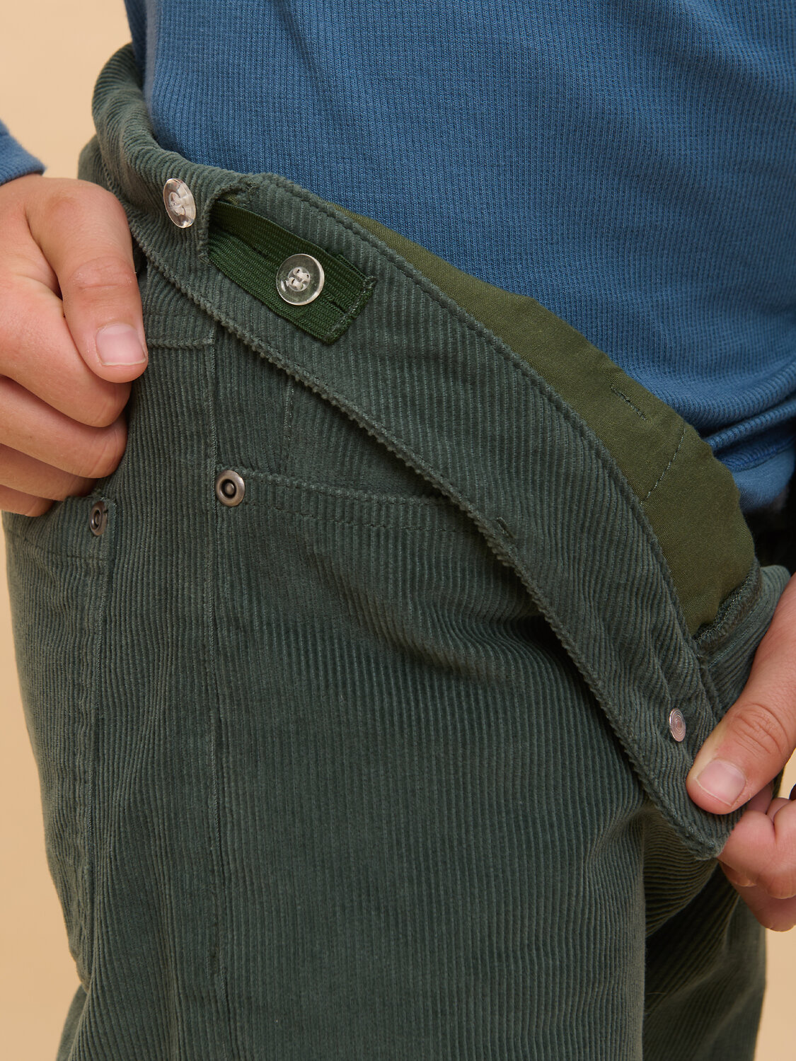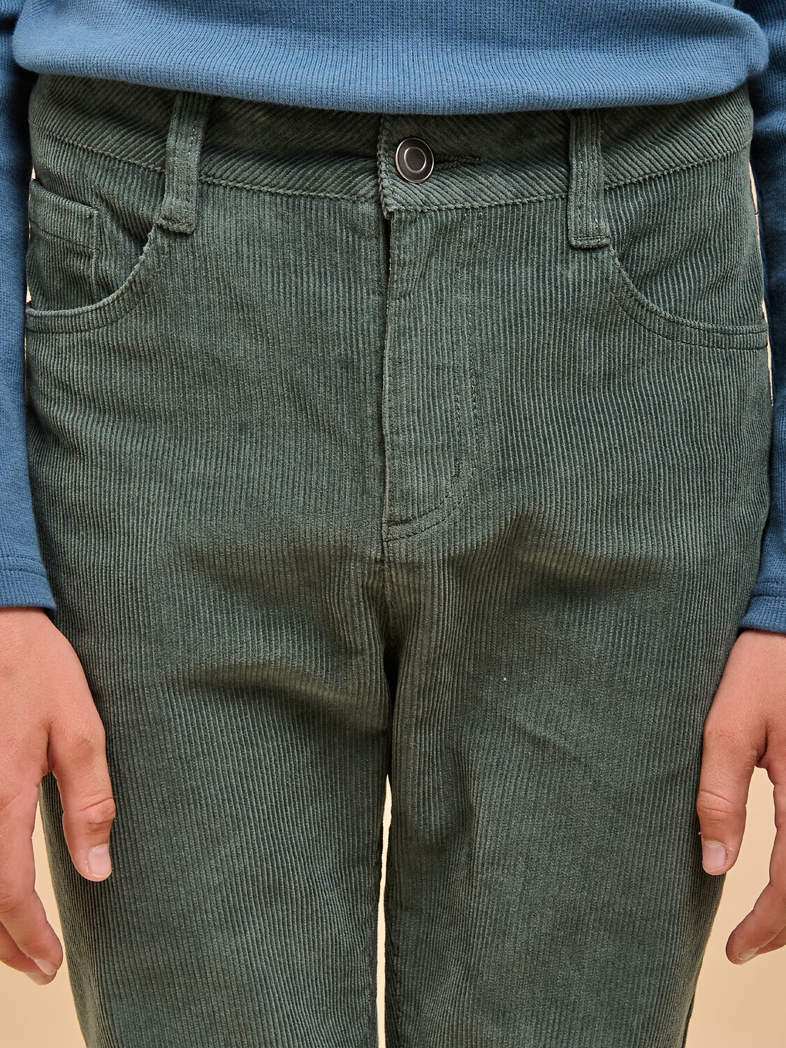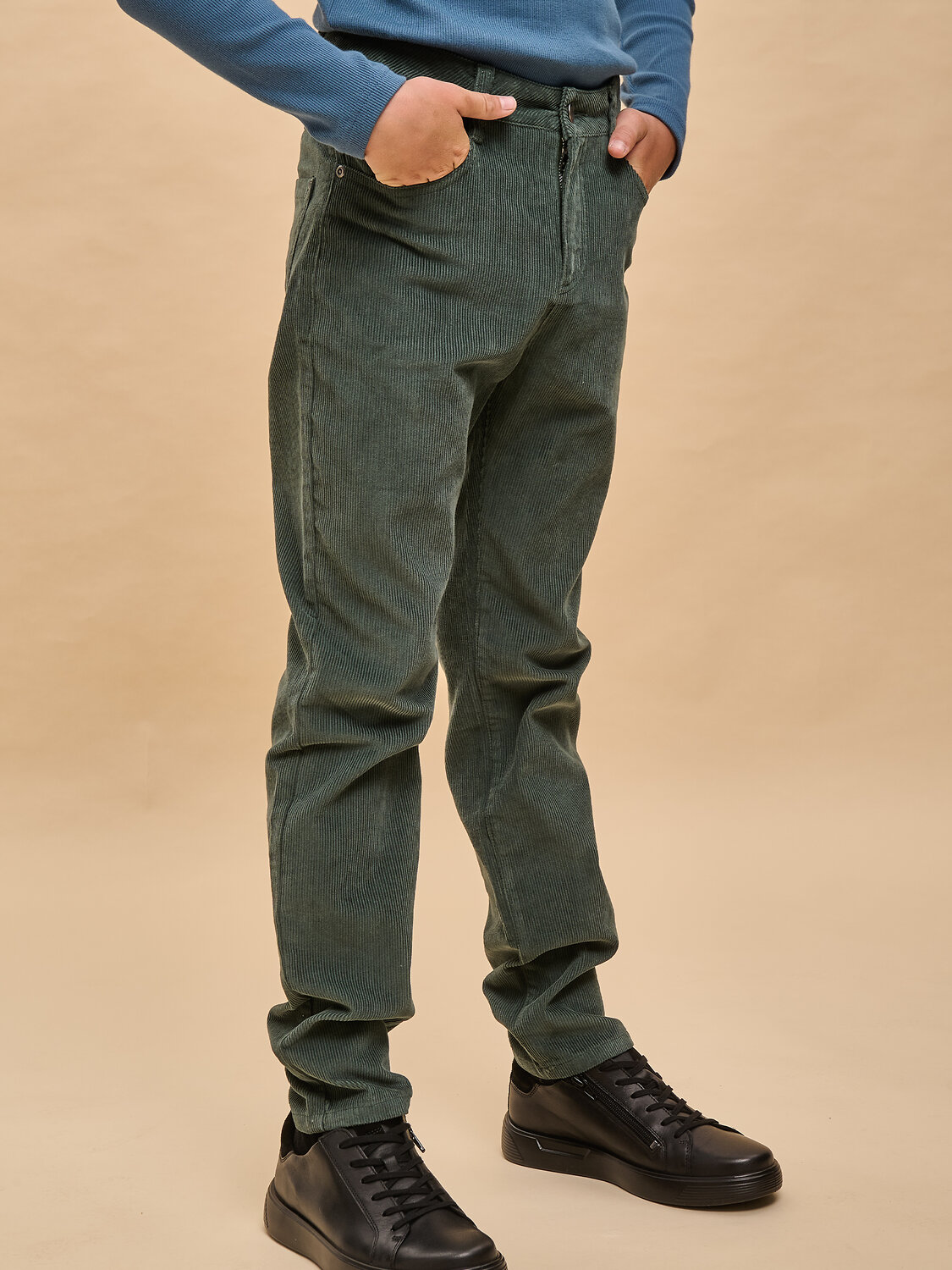 Вельветовые брюки с высокой посадкой для мальчика. Стильная современная модель – идеально сидит, отлично носится, всегда аккуратно выглядит. 100% хлопок в составе – ткань мягкая, дышащая, приятная на ощупь, прочная и простая в уходе. Застежка на гульфик и металлическую пуговицу. Внутренняя регулировка объема по талии широким эластиком и пуговицей – брюки не спадают, комфортно носить без ремня. Удобные карманы по бокам и сзади для важных мелочей. Снизу можно сделать манжеты и отворачивать их по мере роста ребенка. Модель отлично комбинируется с футболкой, водолазкой, лонгсливом – одинаково хорошо с заправленной одеждой и навыпуск. Подходит для создания стильного повседневного образа.