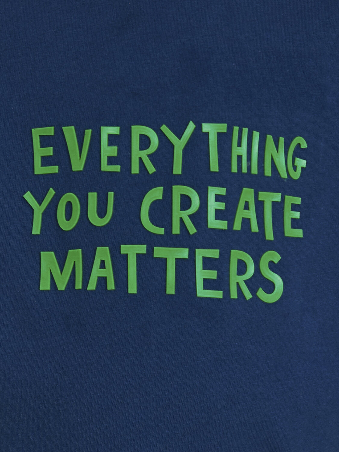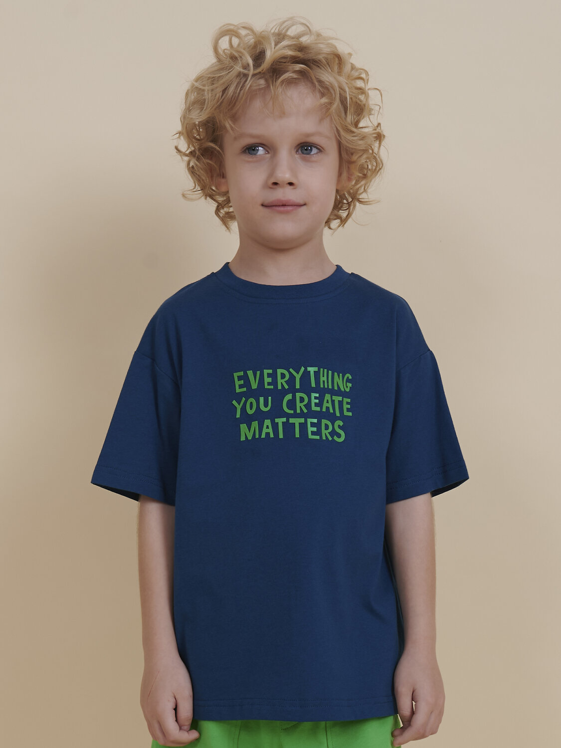 Футболка детская – модель умеренного объема на каждый день, для дома и прогулок. Легкая трикотажная футболка подходит в качестве нательного белья и многослойных образов. Базовая футболка на любой сезон. Изделие сшито из 100% натурального хлопка, мягкий материал приятно прилегает к телу, не вызывая дискомфортных ощущений во время движений. Хлопок хорошо пропускает воздух, обеспечивает гигроскопичность. Материал не задерживает влагу - ребенок не потеет. Детская футболка с оптимальным размером горловины удобна в носке - позволит ребенку с легкостью надевать и снимать ее самостоятельно, прослужит долго и будет радовать износостойкостью. Модель представлена в двух расцветках: белом и темно-синем. Красивый вариант на любой выход. Футболка для мальчика с принтом спереди украшена надписью "Everything you create matters" – перевод "Всё что ты создаешь важно". На спинке изображен тюбик с гуашью. Изделие привлекает интересным дизайном. Футболка для мальчика подростковая рассчитана на возраст садика и школы. Размерная линейка: 1 (86): 2 (92): 3 (98): 4 (104): 5 (110): 6 (116): 7 (122): 8 (128): 9 (134): 10 (140): 11 (146). Крутая футболка для мальчика – отличный подарок для сына, внука, братика, племянника, крестника! Выбирайте нужный размер по таблице размеров на фото. Цвет товара на экране вашего устройства может отличаться от цвета изделия вживую.