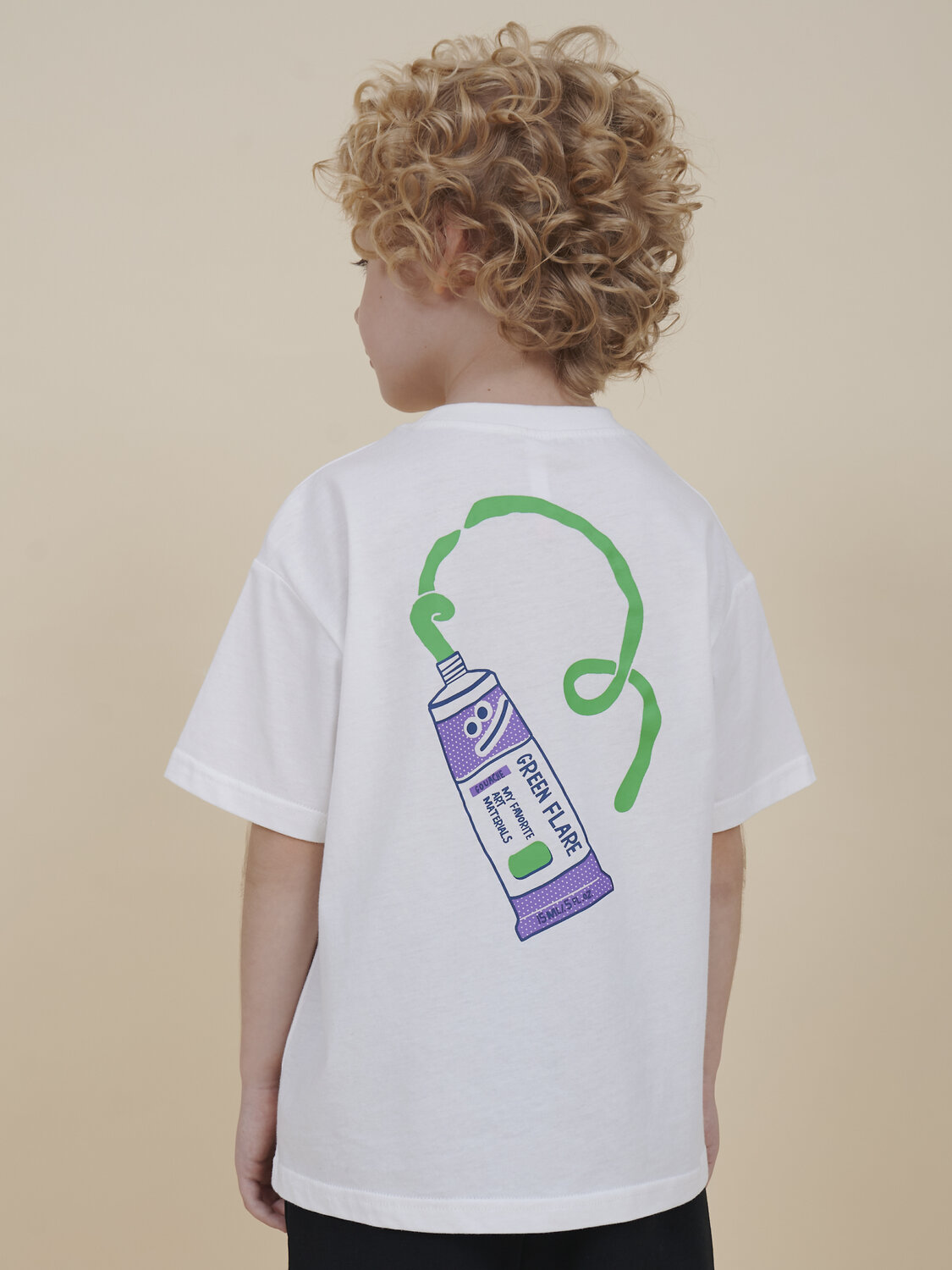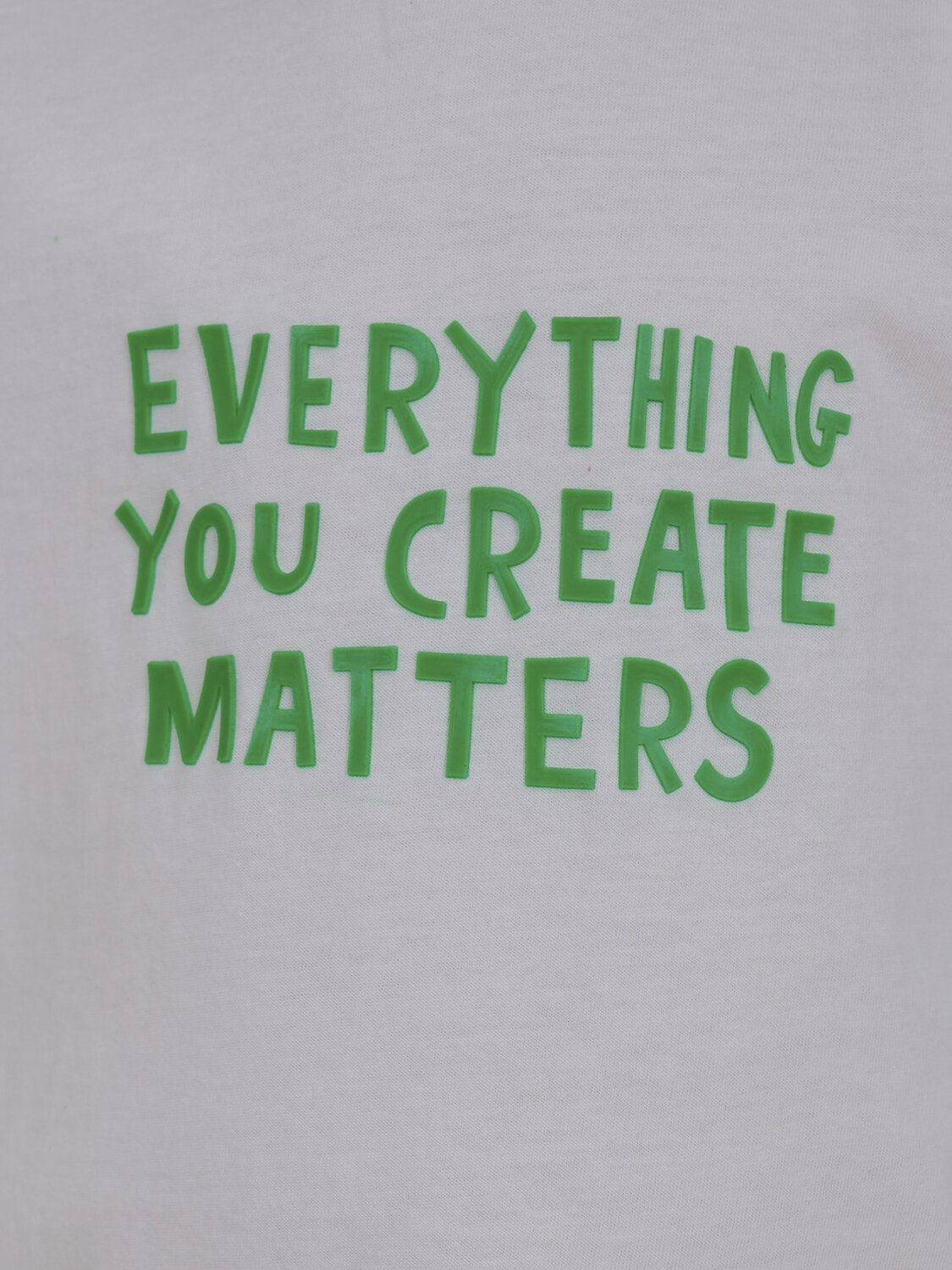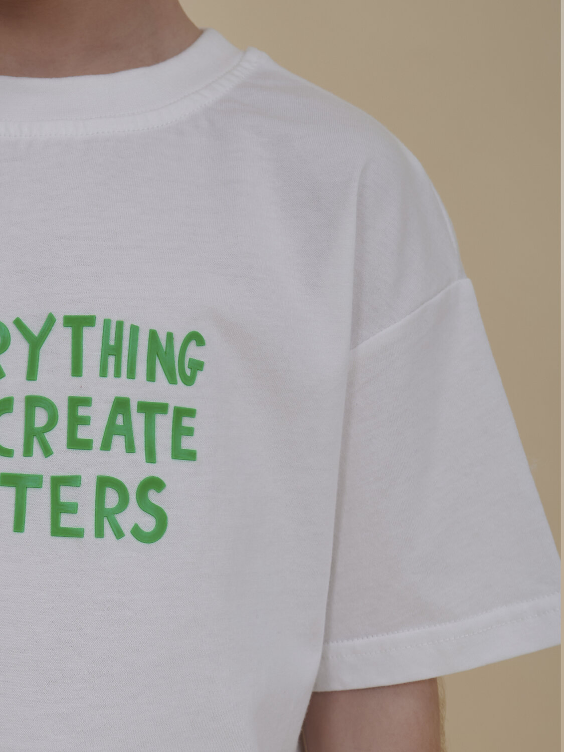 Футболка детская – модель умеренного объема на каждый день, для дома и прогулок. Легкая трикотажная футболка подходит в качестве нательного белья и многослойных образов. Базовая футболка на любой сезон. Изделие сшито из 100% натурального хлопка, мягкий материал приятно прилегает к телу, не вызывая дискомфортных ощущений во время движений. Хлопок хорошо пропускает воздух, обеспечивает гигроскопичность. Материал не задерживает влагу - ребенок не потеет. Детская футболка с оптимальным размером горловины удобна в носке - позволит ребенку с легкостью надевать и снимать ее самостоятельно, прослужит долго и будет радовать износостойкостью. Модель представлена в двух расцветках: белом и темно-синем. Красивый вариант на любой выход. Футболка для мальчика с принтом спереди украшена надписью "Everything you create matters" – перевод "Всё что ты создаешь важно". На спинке изображен тюбик с гуашью. Изделие привлекает интересным дизайном. Футболка для мальчика подростковая рассчитана на возраст садика и школы. Размерная линейка: 1 (86): 2 (92): 3 (98): 4 (104): 5 (110): 6 (116): 7 (122): 8 (128): 9 (134): 10 (140): 11 (146). Крутая футболка для мальчика – отличный подарок для сына, внука, братика, племянника, крестника! Выбирайте нужный размер по таблице размеров на фото. Цвет товара на экране вашего устройства может отличаться от цвета изделия вживую.