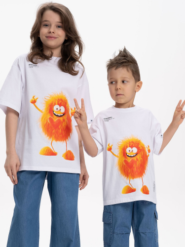 Детская футболка унисекс среднего объема. Прикольная нарядная футболка свободного силуэта со спущенным плечом не будет стеснять движений ребёнка. Вырез горловины отделан эластичной рибаной - голова не застрянет. Главная фишка футболки — яркий милый принт, изображающий персонажа, сгенерированного нейросетью (искусственным интеллектом). Это супермодный тренд! Принт эластичный и стойкий — без проблем переносит многочисленные стирки, не теряя своей яркости. На принте изображён забавный пушистый чудик (монстрик) желтого цвета + надписи "хихиканье", "искры радости для меня" и "создано с помощью искусственного интеллекта". Широкая размерная сетка позволяет приобрести такую футболку как малышу в детский садик так и подростку. . Белые футболки подходят для носки летом, осенью и весной (демисезон), а также зимой . Цвет товара на экране вашего устройства может отличаться от цвета изделия вживую.