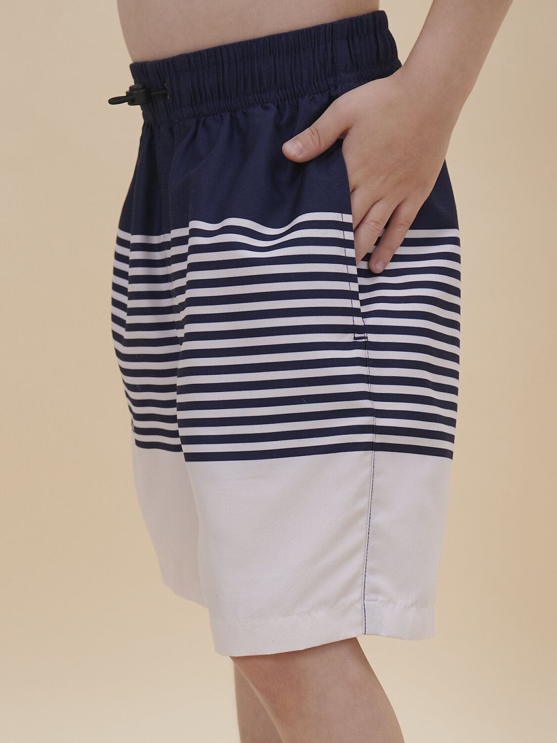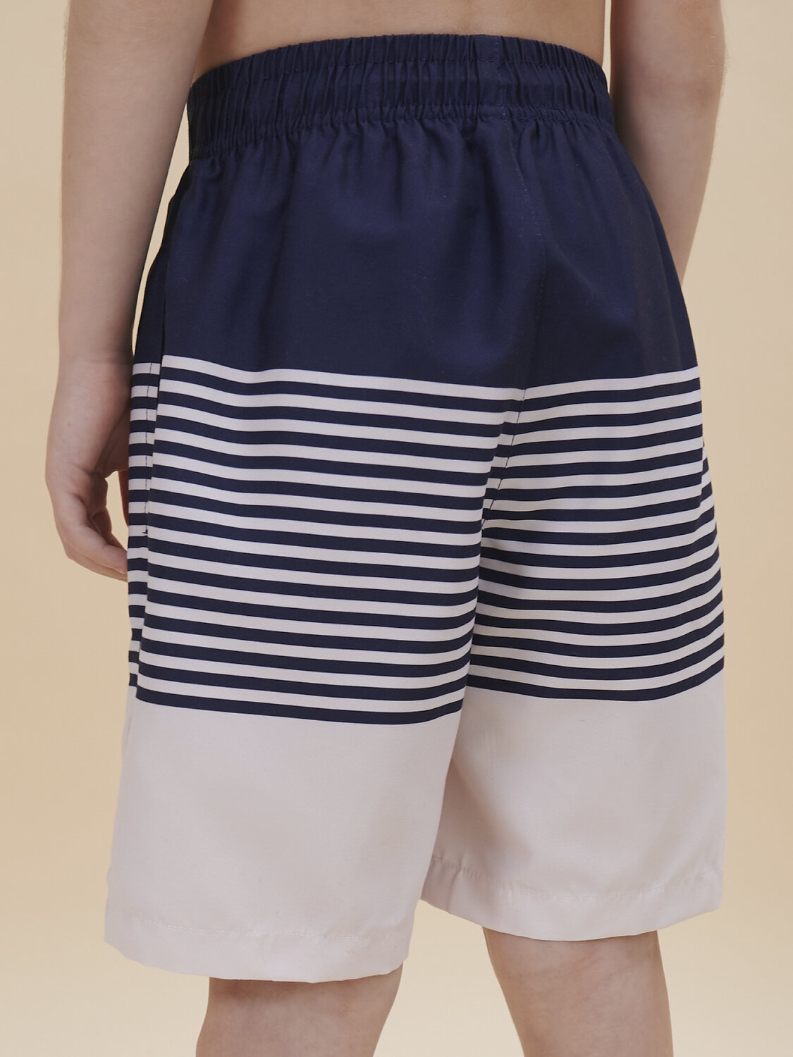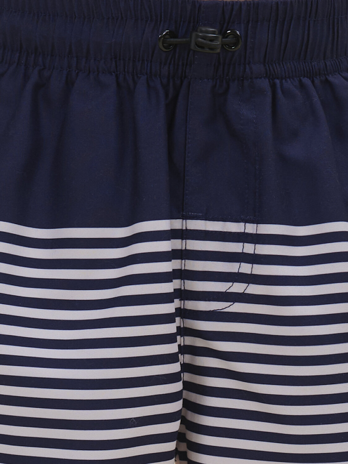 Шорты купальные для мальчика – детская пляжная модель для плавания, активных видов спорта, отдыха у моря, реки, озера. Бордшорты не заменимы в летний сезон. Они не сковывают движений, позволяют свободно двигаться, играть, бегать, купаться и загорать. Шорты детские представлены для возраста садика и школы. Понравятся малышам, дошколятам и подросткам. Изделие сшито из мягкой микрофибры - 100% полиэстера. Это экологически чистая, нежная ткань, которая приятна на ощупь, подходит даже для чувствительной кожи малышей. Микрофибра хорошо впитывает влагу, быстро сохнет, легко отстирывается от загрязнений и не выцветает на солнце. Шорты для мальчика из микрофибры отличаются износоустойчивостью, меньше подвержены деформации, хорошо пропускают воздух, гигроскопичны и гипоаллергенны. Внутри трусы из мягкой элластичной сетки. Шорты для мальчика подростковые - одежда швейная, на широкой резинке с дополнительной регулировкой объема шнуром и двумя боковыми карманами. Хорошо фиксируется на талии, легко подстраивается под любой тип фигуры. Модная модель представлена в темно-синем цвете в полоску на контрастном фоне. Комфортный и утилитарный вариант, совмещающий в себе элементы минимализма и душевности. Удобство и безопасность с морским подтекстом. Размерная линейка: 3 (98): 4 (104): 5 (110): 6 (116): 7 (122): 8 (128): 9 (134): 10 (140): 11 (146). Шорты детские для мальчика - отличный подарок для сына, внука, братика, племянника, крестника! Выбирайте нужный размер по таблице размеров на фото. Цвет товара на экране вашего устройства может отличаться от цвета изделия вживую. Товар возврату и обмену не подлежит.