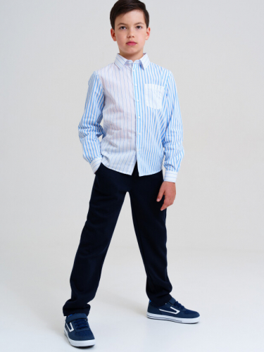 Модный темно-синий трикотажный пиджак в школу для мальчика от PlayToday — идеальный выбор для родителей, которые ищут баланс между классикой, удобством и практичностью.