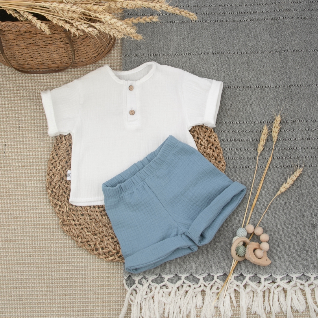 Пижама летняя для мальчика "Муслин", серо-голубой, лето
